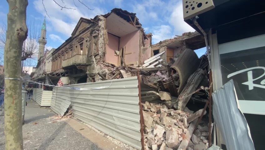 Edinilen bilgiye göre, Edremit’in kent kimliğinde önemli tarihi yapılar arasında yer alan binanın ön cephesinde geçtiğimiz günlerde meydana gelen aşırı yağışlar sonrasında çökmeler yaşanmıştı. Olayın ardından belediye zabıta ve fen işleri ekipleri bölgeyi kordon altına alarak güvenlik önlemleri almıştı. Bugün ise tarihi yapının geriye kalan kısmında büyük bir çökme daha meydana geldi.