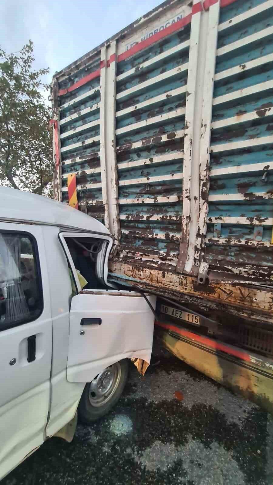 Olayın detaylarına göre, 10 AEZ 115 numaralı plakalı bir kamyon ile 10 ALS 335 plakalı otomobil ve 10 KC 291 plakalı bir kamyonet çarpışma yaşadı. Kazanın ardından araç içinde sıkışan bir vatandaş, itfaiye ekiplerinin hızlı müdahalesi ile kurtarıldı ve sağlık ekiplerine teslim edildi.