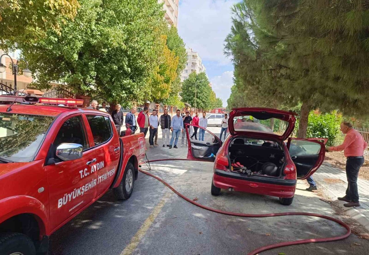 Olay, Efeler ilçesinin Mimar Sinan Mahallesi’nde bulunan 2235 Sokak’ta gerçekleşti. Alınan bilgilere göre, 35 ARN 640 plakalı otomobil seyir halindeyken motor bölümünden bilinmeyen bir sebepten ötürü dumanlar çıkmaya başladı. Durumu hemen fark eden araç sürücüsü, aracı sağa çekerek 112 Acil Çağrı Merkezi’ne haber verdi.
