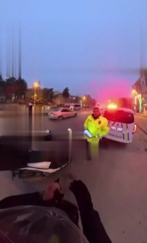 MUŞ’TA TRAFİK DENETİMİ SIRASINDA ÜŞÜYEN MOTOSİKLETLİ KURYEYE KENDİ ELDİVENİNİ VEREN TRAFİK POLİSİ RIDVAN DAĞDEMİR’İN GÖRÜNTÜLERİ, SOSYAL MEDYADA BÜYÜK BEĞENİ TOPLADI.