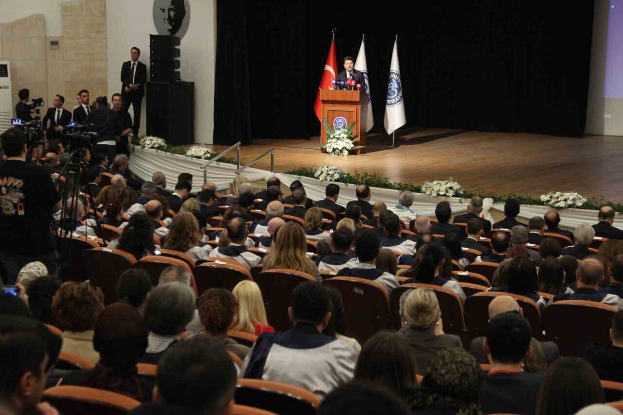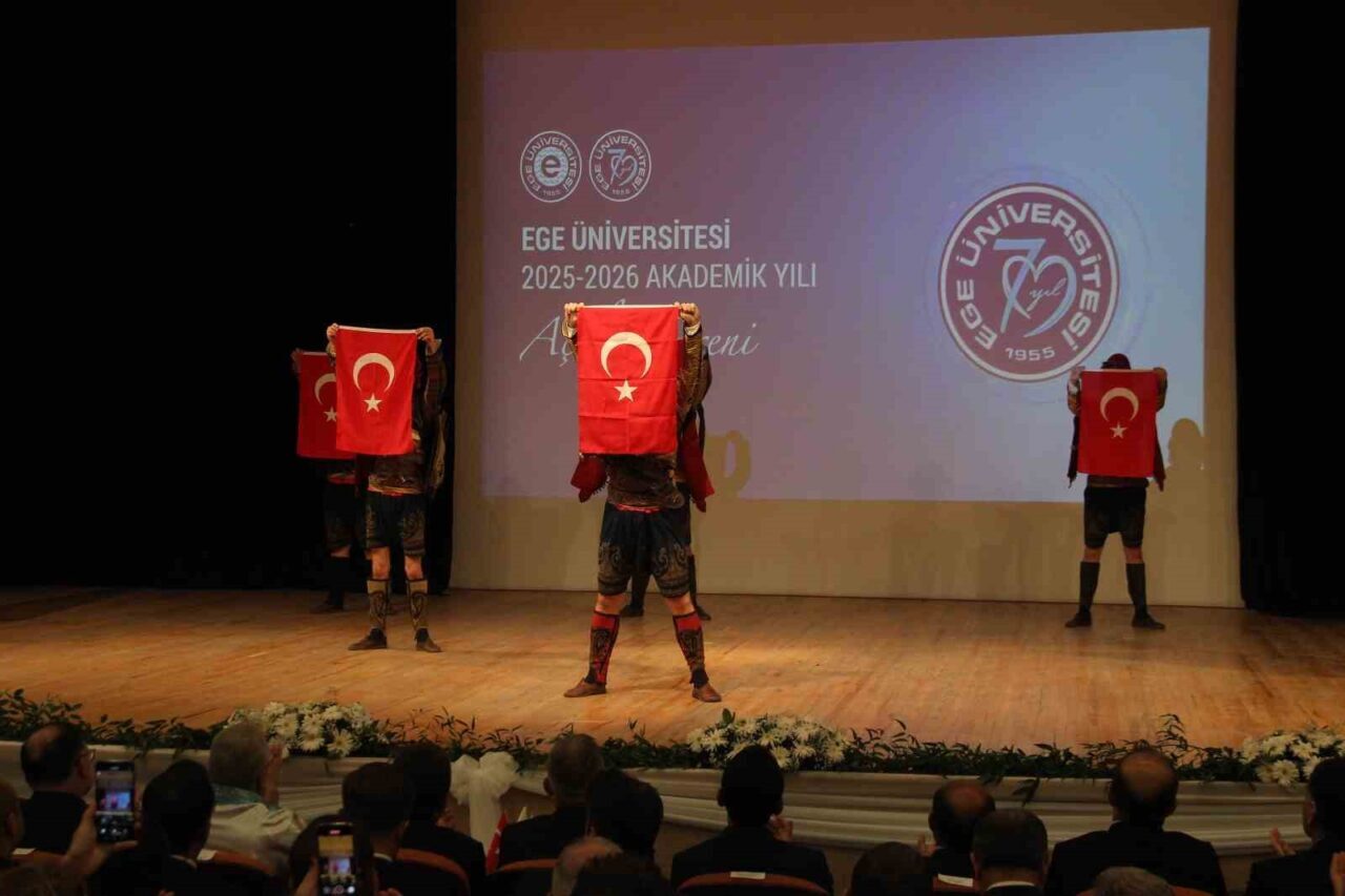 2025-2026 akademik yılı açılış programı, Ege Üniversitesi Prof. Dr. Yusuf Vardar MÖTBE Kültür Merkezi’nde yapıldı. Etkinlik, üniversitenin halk oyunları ekibinin gerçekleştirdiği zeybek gösterisi ile başladı. Bunun ardından, Ege Üniversitesi Medya Uygulama ve Araştırma Merkezi tarafından hazırlanan kısa bir tanıtım videosu izletildi. Açılış töreninde, Adalet Bakanı Yılmaz Tunç’un yanı sıra İzmir Valisi Süleyman Elban, Ege Üniversitesi Rektörü Prof. Dr. Necdet Budak, akademisyenler ve öğrenciler de yer aldı.