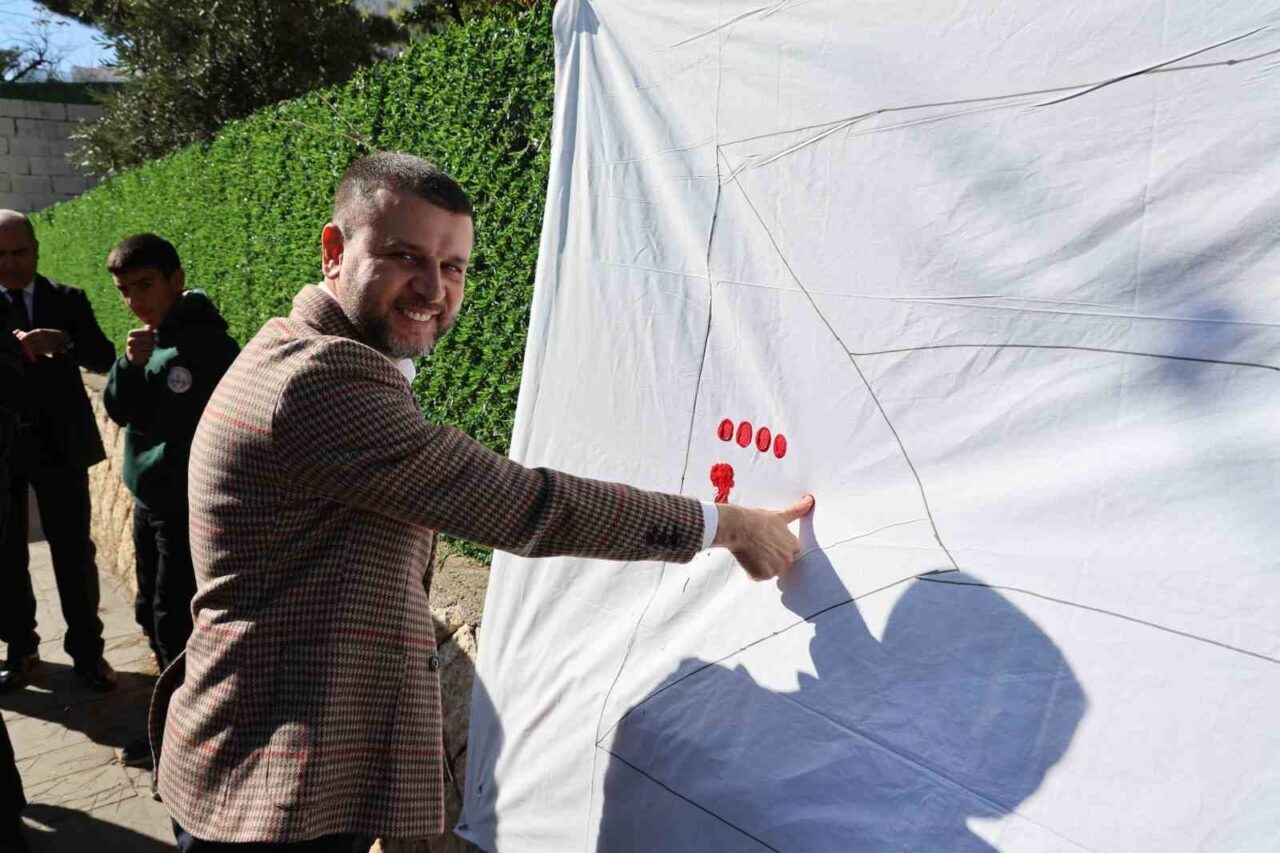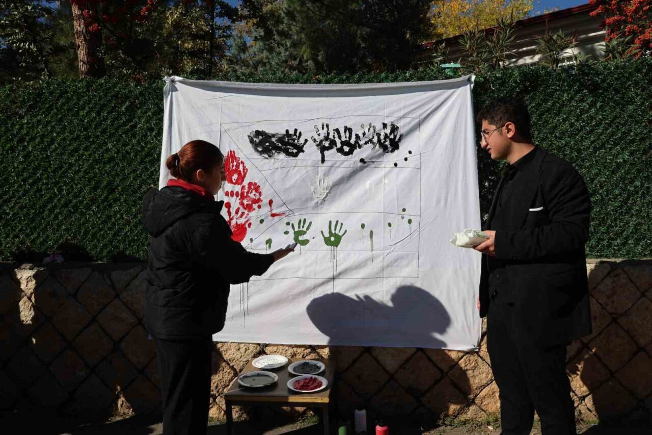 Eğil Belediyesi tarafından İsrail’in saldırılarına karşı bir tepki olarak gerçekleştirilen bu etkinlik, yaşanan insan hakkı ihlallerine dikkat çekmeyi hedefliyor. Etkinlikte, katılımcı öğrenciler, kırmızı, siyah ve yeşil renklerle boyadıkları parmak ve ellerini kumaştan yapılmış bir panoya basarak, Filistin bayrağının simgeleriyle dolu etkileyici bir çalışma ortaya koydular.