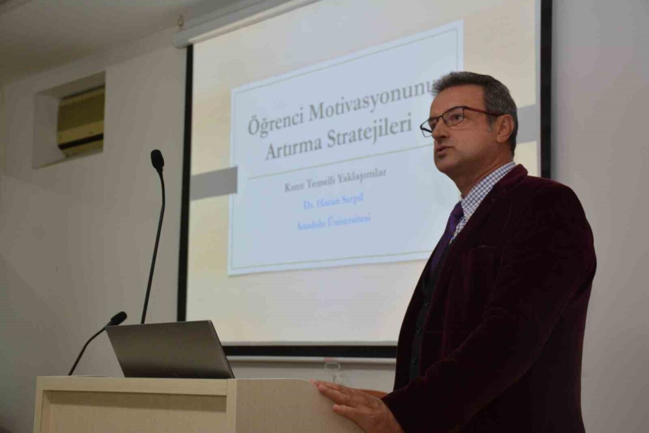 Anadolu Üniversitesi Eğitim Fakültesi tarafından düzenlenen ‘Öğrenci Motivasyonunu Artırma Teknikleri’ semineri, pek çok katılımcıyı bir araya getirdi. Konferansın konuşmacısı Dr. Öğr. Üyesi Harun Serpil, içsel ve dışsal motivasyonun eğitimdeki önemini vurgulayarak, “Bu iki motivasyon türünün birlikte var olması büyük önem taşır; ama esas olan içsel motivasyonu sağlamaktır” şeklinde açıklamalarda bulundu.