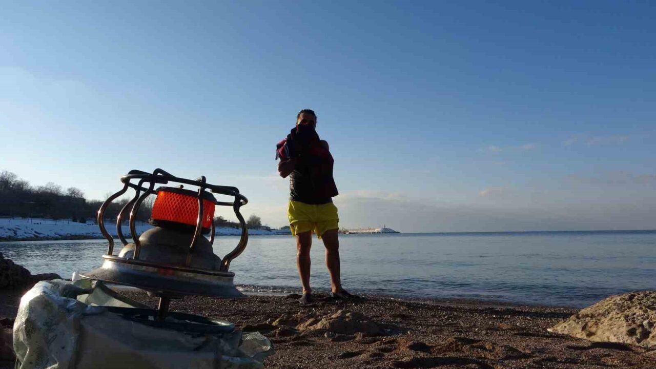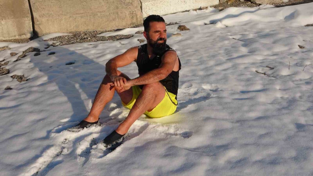 Doğu Anadolu Bölgesi’nde kış şartları kendini iyice hissettirirken, Van’da görev yapan 2 öğretmen, sıra dışı bir olaya imza attı. Dondurucu soğuğa aldırış etmeyen Muhammed Türken ve meslektaşı Kamuran Çelik, hava sıcaklığının sıfırın altında 9 dereceye kadar düştüğü kentte, Van Gölü’nün şifalı ve soğuk sularına dalarak yüzdüktan sonra kar üzerinde güneşlendiler. Akşam saatlerinde Edremit ilçesi sahilinde bir araya gelen Türken ve Çelik, termometrelerin eksi 9 dereceyi gösterdiği dakikalarda kendilerini Van Gölü’nün turkuaz sularına bıraktılar. Türken’in sosyal medya hesabından canlı olarak paylaştığı o anlar büyük ilgi gördü.