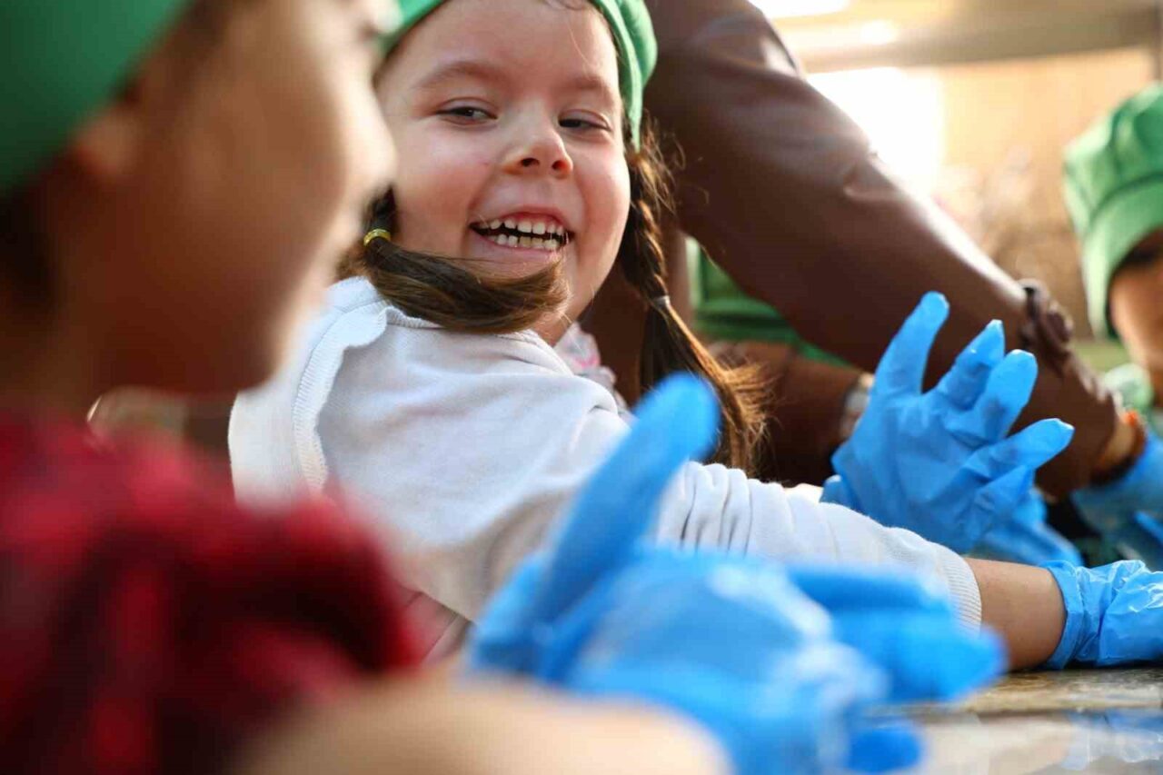 Şehit Faruk Demir İlkokulu’nun ana sınıfı öğrencileri, “Minik Şeflerimiz Mutfakta” projesinin ilk etkinliği için Şehit Mehmet Öter Turizm Mesleki ve Teknik Anadolu Lisesi’ni ziyaret etti. Burada öğrenciler, öğretmenlerinin rehberliğinde önlüklerini giyerek hamurlarına şekil vermeye başladılar. Renkli anların yaşandığı etkinlik, hem eğlenceli hem de öğretici bir mutfak deneyimi sundu. Projede yer alan İl Milli Eğitim Müdürü Beraat Şahin, öğrencilere eşlik ederek hamur açtı ve birlikte kurabiye hazırladı. Etkinlik sona erdiğinde, minik şefler kendi yaptıkları kurabiyeleri tatma fırsatı buldular.