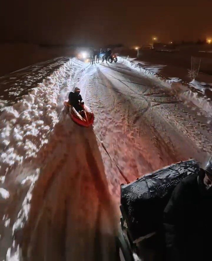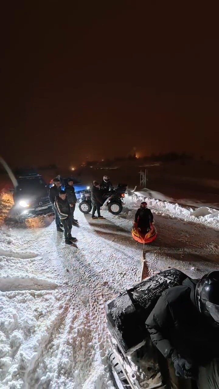 Elazığ’da vatandaşlar kar üzerindeki eğlencelerini farklı bir boyuta taşıdı. Harput’ta bir araya gelen grup, şişme botu ATV araca bağladı. Sonrasında botun içine binen şahıs, ATV ile hızla çekilmeye başladı. Kask takan şahsın, bir süre sonra hıza dayanamayarak düştüğü hem eğlenceli hem de tehlikeli o anlar cep telefonu kamerasına yansıdı.