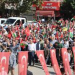 Miting, uluslararası sularda “Sumud Filosu”na yönelik saldırıları kınamak amacıyla organize edildi. 15 Temmuz Demokrasi Meydanı’nda toplanan kalabalık, tekbirler getirip sloganlar atarak Gazi Caddesi boyunca Cumhuriyet Meydanı’na doğru yürüyüşe geçti.