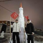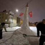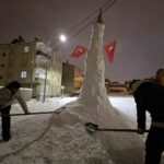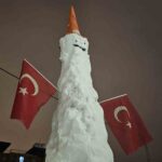 Arda Erulaş ise, “Kar, kömür, duba ve bayrak kullandık. Kürek desteğiyle yaptık. Biraz abartalım dedik. Yaklaşık 4 ya da 4 buçuk metre oldu” şeklinde konuştu.