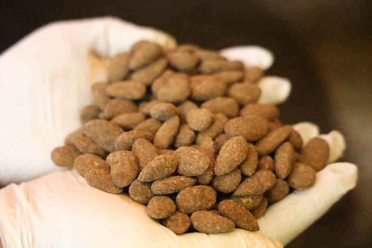 Elazığ’da geleneksel lezzetlere getirilen yenilikçi dokunuşla üretilen kahveli badem şekeri ilgi gördü.
