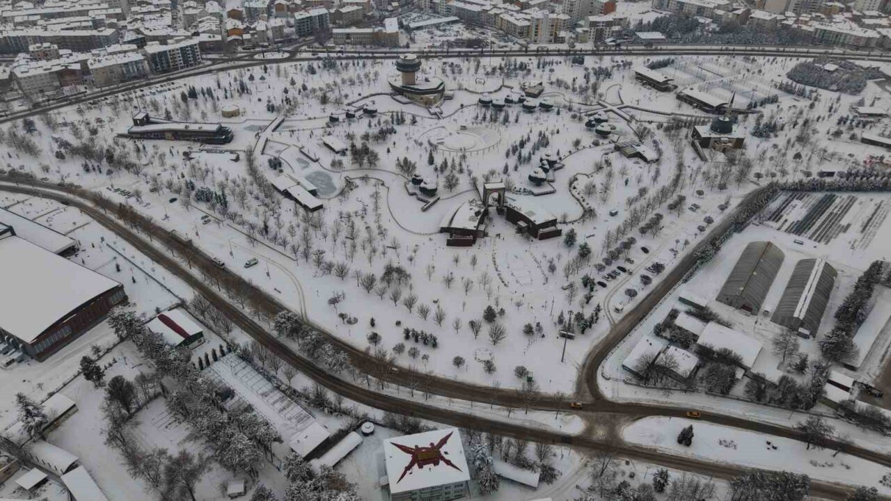 Elazığ’da kar yağışı sonrası şehrin kalbindeki Fırat Üniversitesi ormanı ve Kültür Park, binaların arasında yükselen beyaz bir vahaya dönüştü.