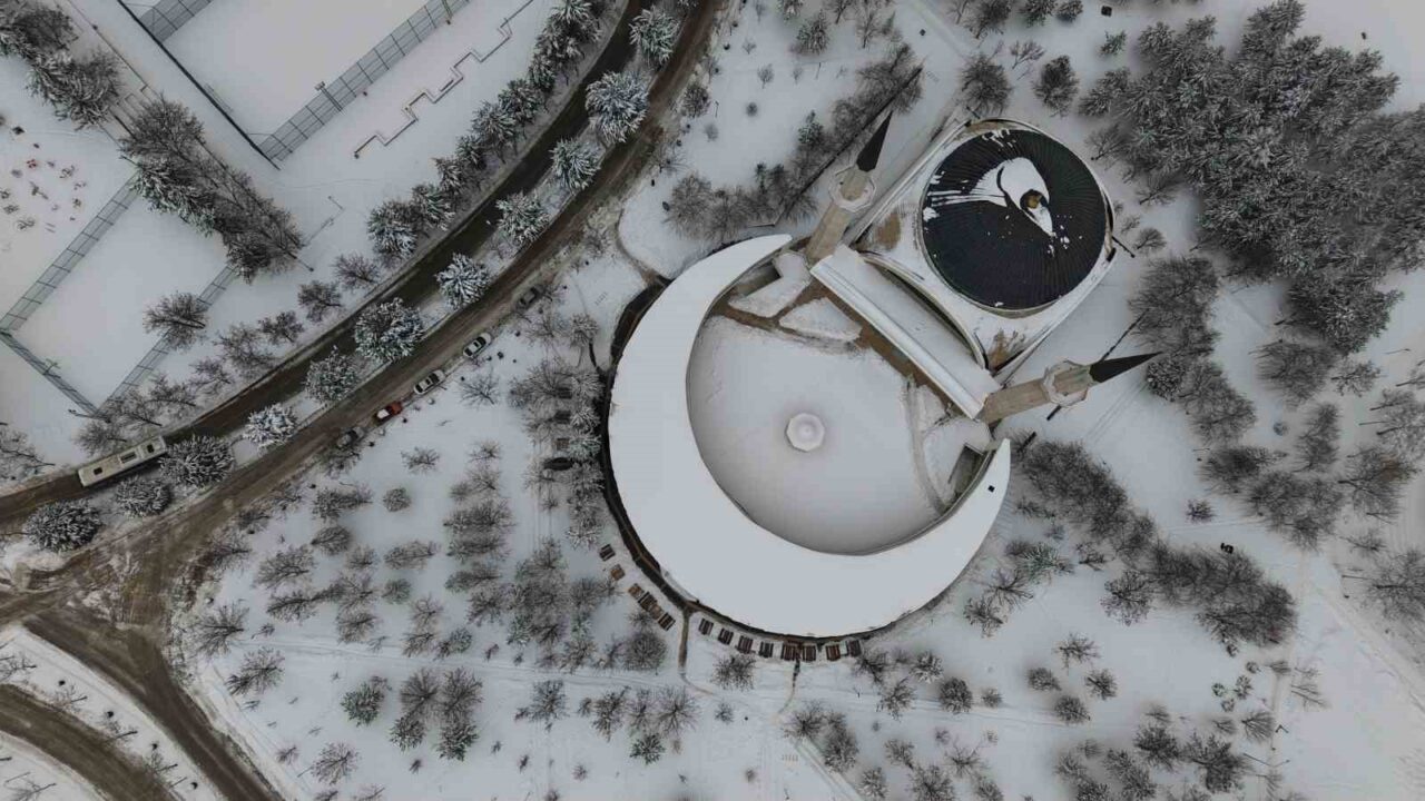 Elazığ’da kar yağışının ardından oluşan görüntüler, bu sefer yüksek rakımlı dağlardan değil, şehrin merkezinden geldi. Beton binaların ve ana yolların çevrelediği Fırat Üniversitesi kampüsü içindeki ormanlık alan, kar yağışıyla birlikte şehir merkezinde büyük bir kış bahçesine dönüştü. Genellikle kentin yüksek kesimlerinde karşılaşılan yoğun kar manzaraları, bu defa Elazığ’ın en işlek noktalarından biri olan Zübeyde Hanım Caddesi’nin hemen yanı başındaki ormanlık alanda kaydedildi. Kültür Park’ın modern yapısıyla birleşen ormanlık alan, havadan görüntülendi. Dağ yollarını andıran kar yoğunluğunun şehrin merkezindeki bu anları, nadir kareler oluşturdu.