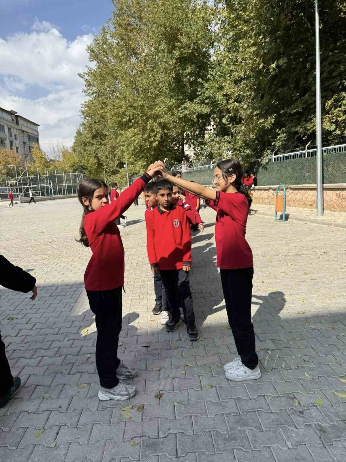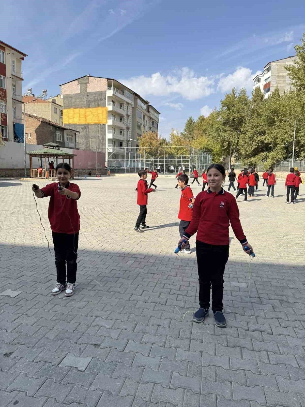 Elazığ’da, Mezre Ortaokulu’nda 5. sınıf öğrencileri, geleneksel oyunların keyfini çıkarırken göz alıcı manzaralar oluşturdu.
