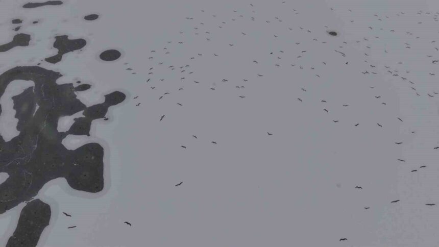 Elazığ’da etkili olan soğuk hava dalgası nedeniyle hava sıcaklığı eksi 11 dereceye kadar düştü. Yaşanan soğuk hava, yaklaşık 1,3 kilometrekare büyüklüğündeki Cip Baraj Gölü’nün donmasına yol açtı. Buz tutan gölün yüzeyi, sonrasında yağan karla kaplandı. Karla kaplanan alanlar havadan dronla görüntülendi.