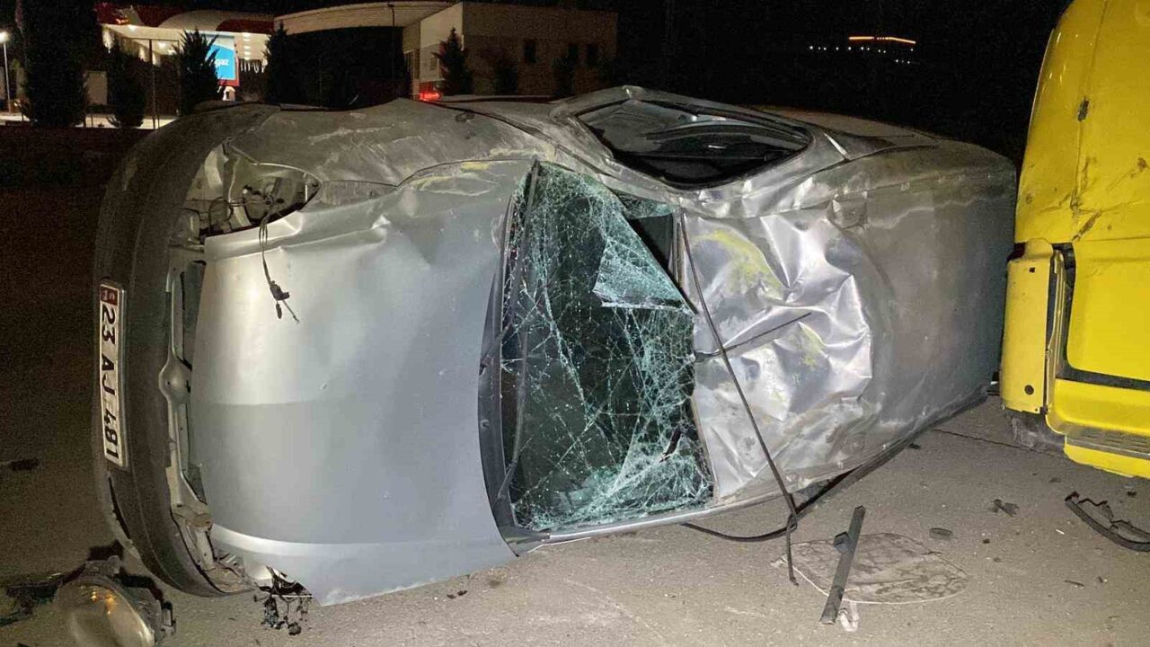 Elazığ’da, direksiyon hakimiyetini kaybeden bir sürücünün kontrolündeki hafif ticari araç, takla atarak park halindeki bir tıra çarptı. Olayda üç kişi yaralandı, bunlardan biri ağır bir şekilde yaralandı.
