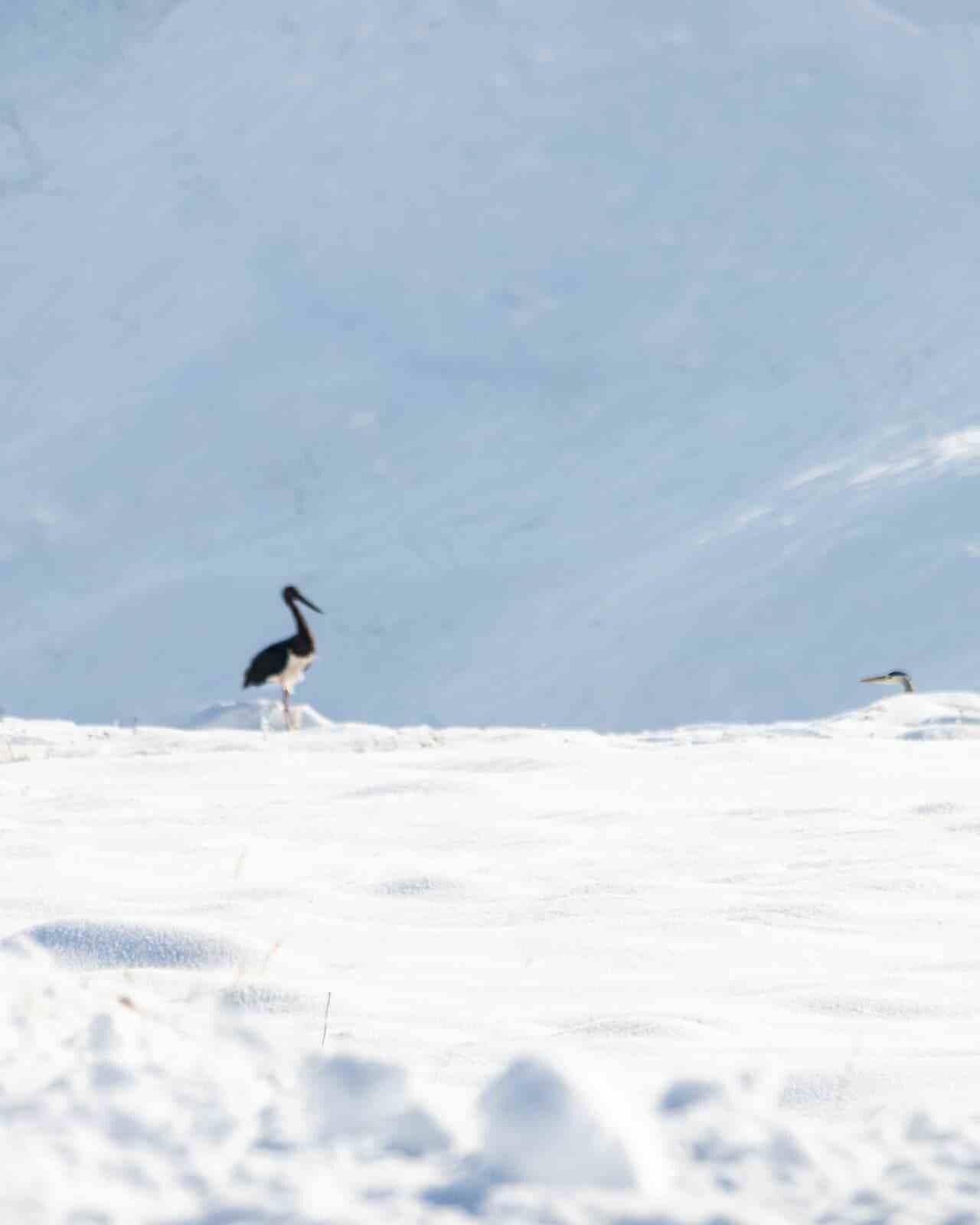 Türkiye’ye mart ayından itibaren gelmeye başlayan leylekler, Ağustos sonunda büyük gruplar halinde göçe başlıyor. Bu bağlamda Elazığ’a gelen leylekler de yaz sonu sıcak bölgelere doğru göç ederken, nesli tehlike altında bulunan kara leyleklerden 2 tanesi göç etmeyi unutmuş durumda. Yaşam alanlarından dolayı adı Baskil ilçesindeki kanyona verilen kara leylekler, karla kaplı Karakoçan ilçesinde gözlemlendi. Doğa Fotoğrafçısı Saim Çakar tarafından fotoğraflanan 2 leylek, görenleri de hayrete düşürdü.