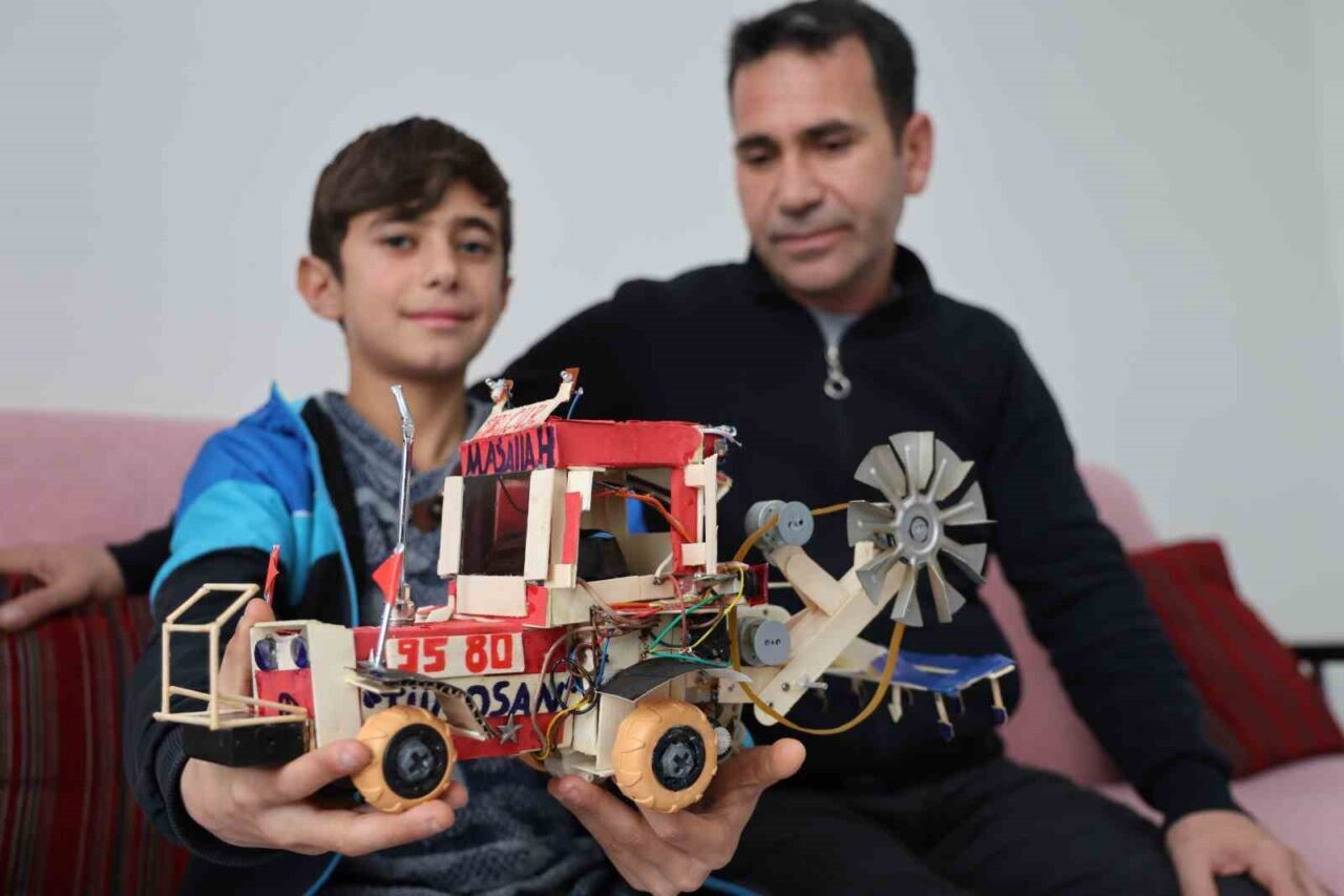 Elazığ’da yaşayan 12 yaşındaki Selçuk Çiçekçi, atık malzemeler ve kendi imkanlarıyla yaptığı traktör maketiyle dikkat çekti. Selçuk Bayraktar’ı örnek alan Selçuk, en büyük hayalinin onun gibi üretmek olduğunu söyledi.