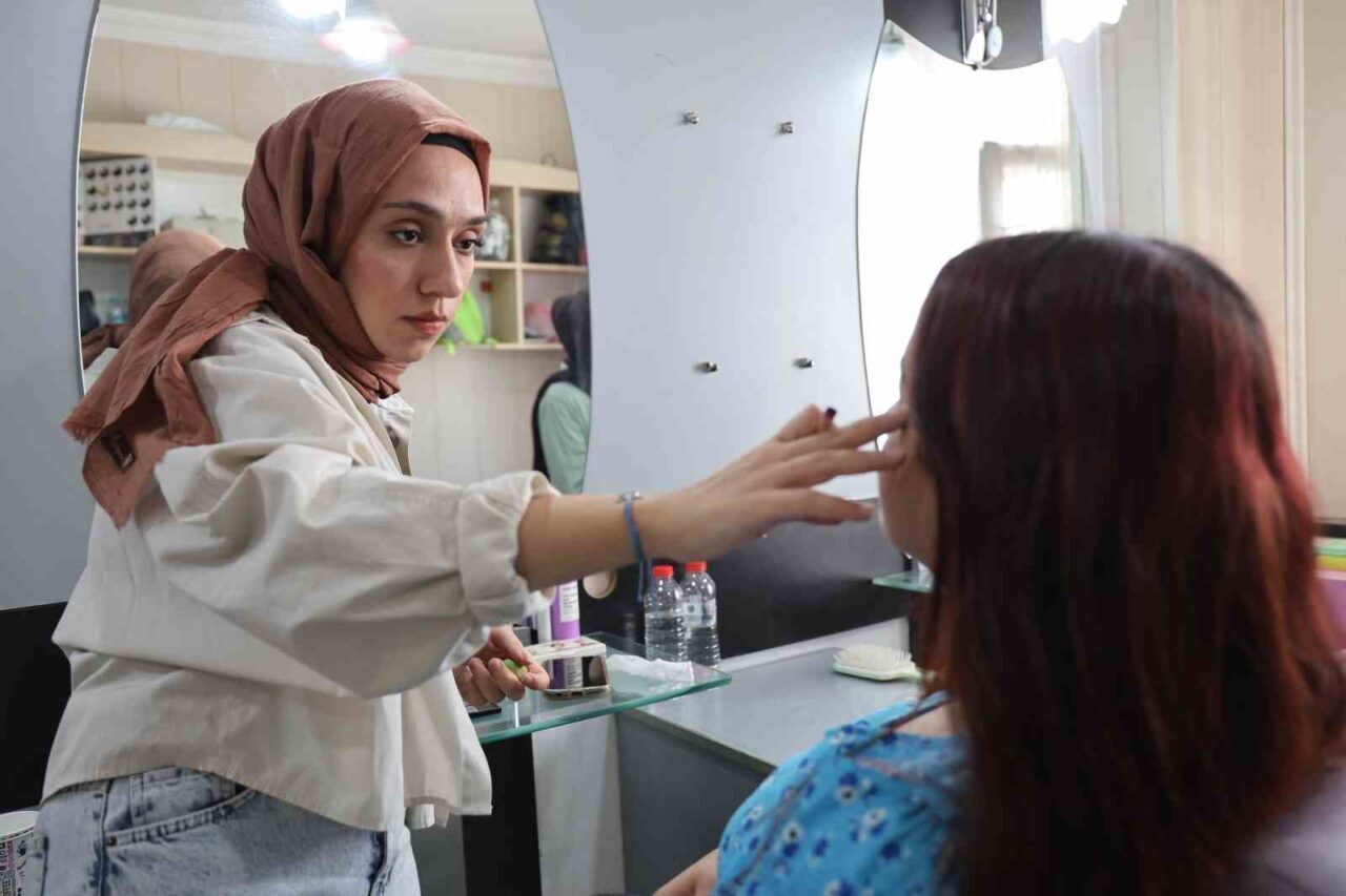 19 yaşındaki Tuğçe Yücel de kendi hedeflerine ulaşmak için kararlılıkla çalıştıklarını ifade etti. Yücel, “Kardeşimle birlikte gelin hazırlama merkezi açma hedefimiz var. Kuaförlük alanında her türlü bilgi ve beceriyi edinmek için buraya geldik. Bu süreçte kendimizi geliştirdik ve dükkanlarda çalışmaya başladık. Ben çoğunlukla başörtüsü yapımı üzerinde çalışıyorum, ablam ise makyaj konularında kendisini geliştirdi. Saç kesimi, kaş alımı ve boyama gibi birçok alanda becerimizi artırdık ve bununla birlikte öğrenmeye devam edeceğiz. Kurs tamamlandıktan sonra kendimizi daha da geliştirecek ve kendi iş yerimizi açmayı hedefliyoruz” diyerek geleceğe dair umutlarını paylaştı.