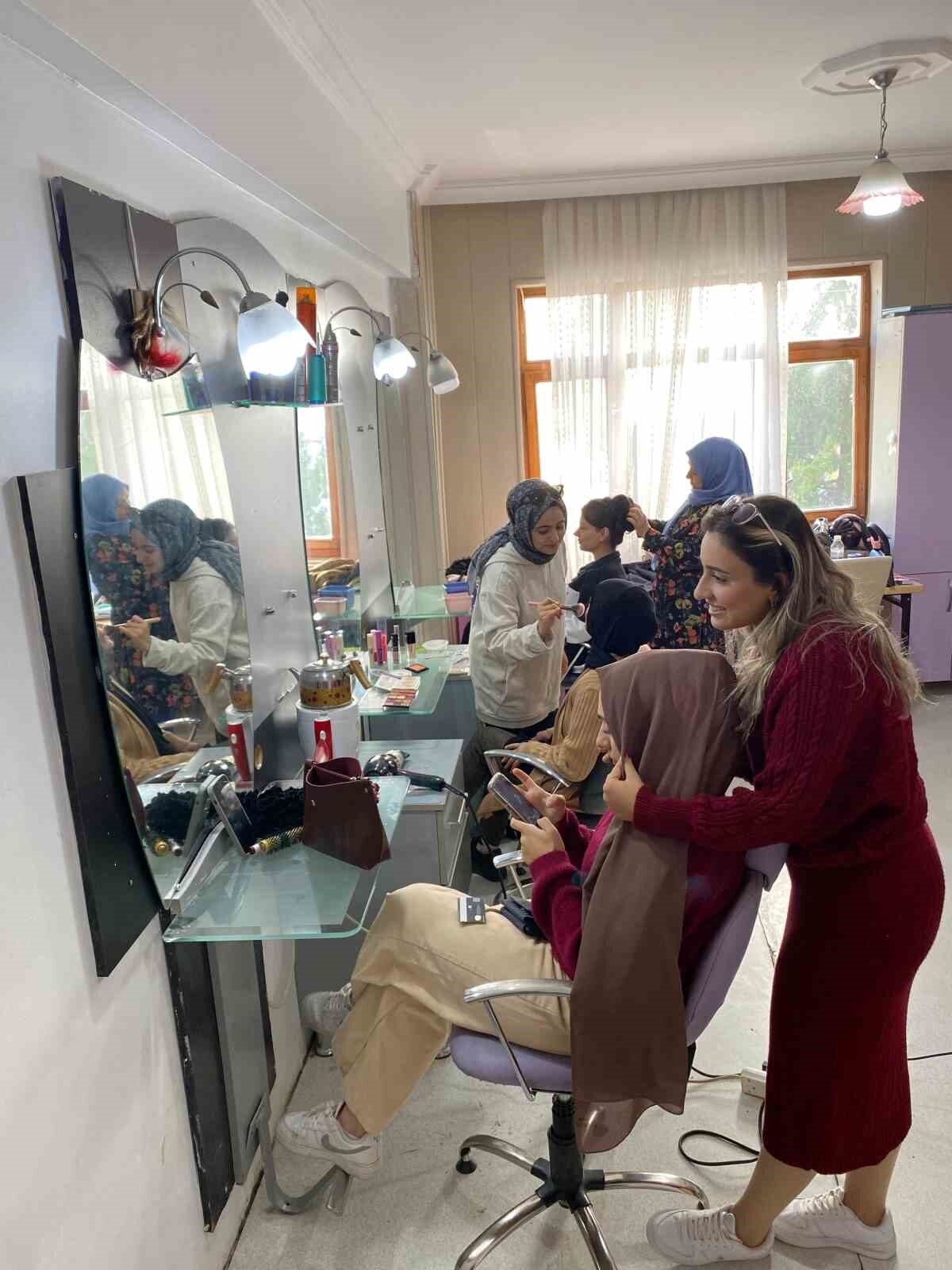 Kursun katılımcılarından 22 yaşındaki Tuğba Yücel ise Şubat ayında başladığı eğitimlerle ilgili şu sözleri dile getirdi: “Ailem beni buraya yönlendirdi. Gelin hazırlama merkezi açma hayalim var. Bu nedenle eğitim alıyorum. Hocalarımız bizlere çok destek oluyor. Artık daha önceden bilmediğim her şeyi öğrenmiş durumdayım. Eğitimlerimi başarılı bir şekilde tamamladıktan sonra kardeşimle birlikte hayalimdeki merkezi açacağız.”