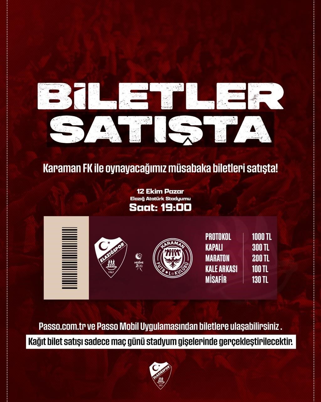 Bu hafta sonunda, Nesine 2. Lig Beyaz Grup kapsamında Elazığ Atatürk Stadyumu’nda gerçekleşecek olan Elazığspor ile Karaman FK arasındaki karşılaşmanın biletleri satışa sunuldu.