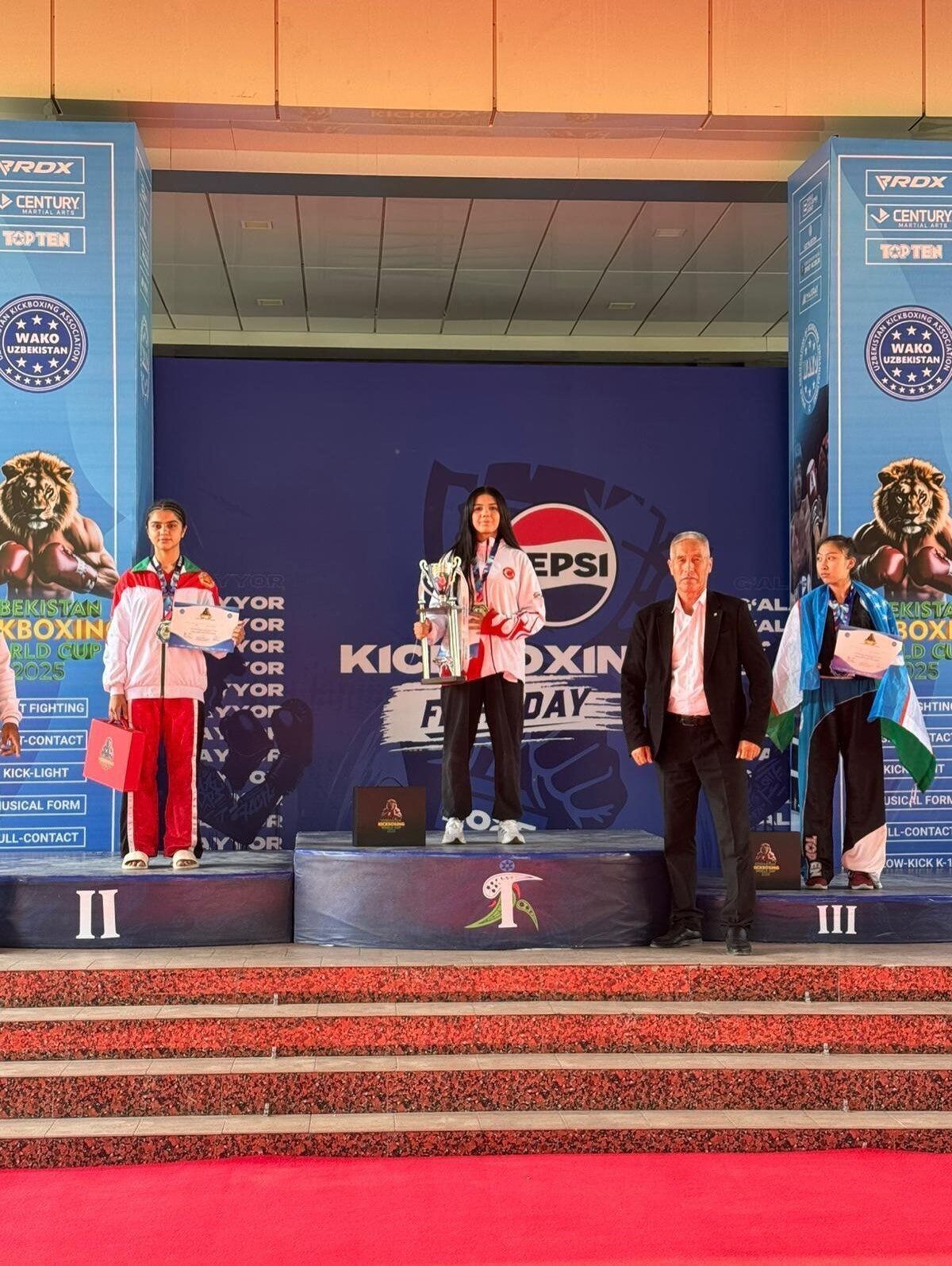 MİLLİ SPORCU ELİF CEREN UZUNÇAKMAK; ÖZBEKİSTAN’DA DÜZENLENEN KİCK BOKS DÜNYA KUPASI’NDA İKİ KATEGORİDE DÜNYA ŞAMPİYONLUĞU ELDE ETTİ.