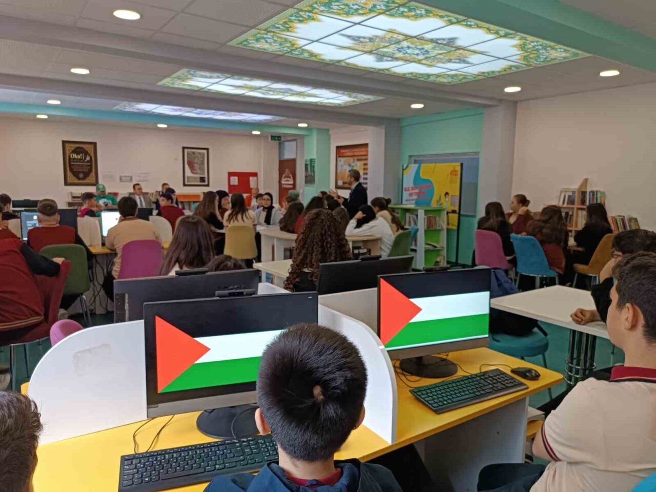 Emirdağ Atatürk Ortaokulu’nda, ‘Filistin Farkındalık Etkinliği’ adı altında gerçekleştirilen program büyük ilgi topladı. Etkinlikte, öğrenciler okul bahçesinde, barışı simgeleyen balonlarla eğlenceli bir etkinlik düzenlerken, umut dolu mesajlarını paylaştılar. 5. ve 6. sınıf öğrencileri, ‘Barışın Renkleri’ teması doğrultusunda, içlerindeki barış, özgürlük ve umut duygularını resimlere döktüler. 7. ve 8. sınıf öğrencileri ise etkinlik boyunca empati ve insanlık değerlerinin önemini bir kez daha kavradılar.