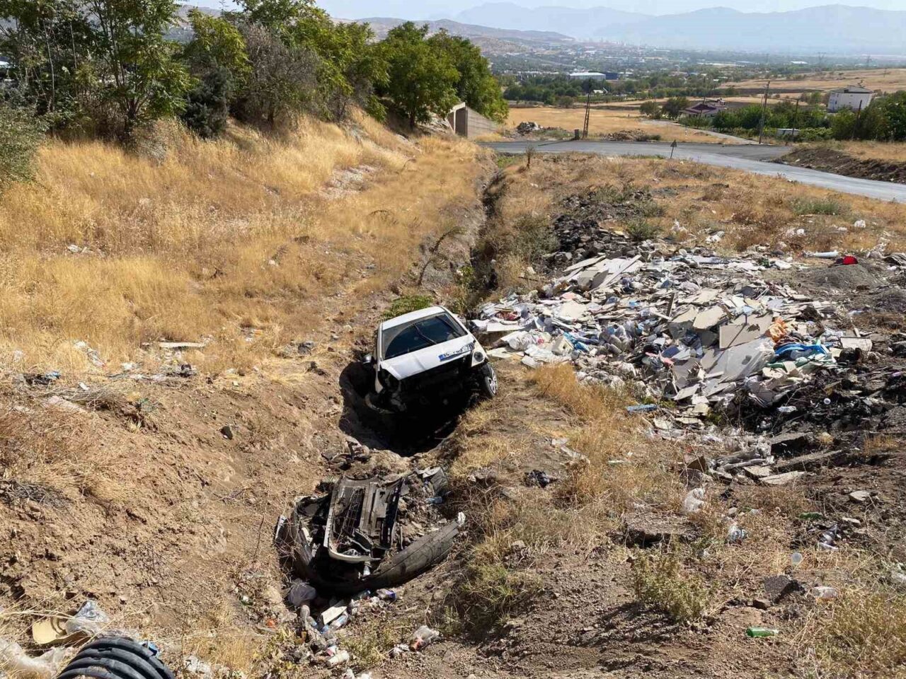 ELAZIĞ’DA SÜRÜCÜSÜNÜN DİREKSİYON HAKİMİYETİNİ KAYBETTİĞİ OTOMOBİL ŞARAMPOLE UÇTU. KAZADA 3 KİŞİ YARALANDI