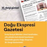 Öğrencilerin “gelecekten haberler” konseptiyle hazırladığı bu sayı, Dünya Dergiler Birliği (DERGİBİR) tarafından bu yıl 16.sı düzenlenen “Dergi Günleri” etkinliği kapsamında 9-12 Ekim tarihleri arasında İstanbul Rami Kütüphanesi’nde sergilenecek. Eğitimi, kültürü ve edebiyatı harmanlayan özgün içeriklerle dolu olan Doğu Ekspresi Gazetesi, okuyuculara hem öğrencilerin yazdığı yazılar hem de hayal gücüne dayalı kurgusal haberler ile benzersiz bir okuma deneyimi sunmayı hedefliyor.
