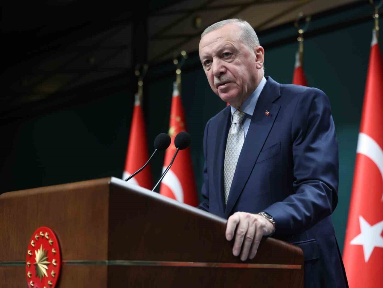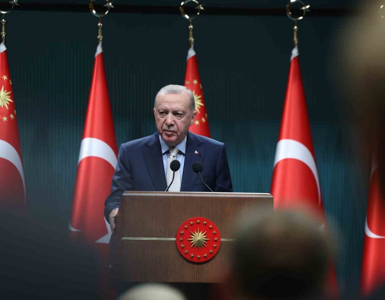Kabine Toplantısı sonrasında konuşan Erdoğan, bu dönemde pek çok önemli konunun görüşüldüğünü ifade etti. 2023 seçimleri sonrası kurulan Cumhurbaşkanlığı Kabinesi’nin 50. toplantısını gerçekleştirdiklerini belirten Erdoğan, Türkiye’nin hedeflerine ulaşma çabalarının devam ettiğini kaydetti. “Dış politikada ve içerdeki hizmet mücadelemizde duraksama yok” dedi.