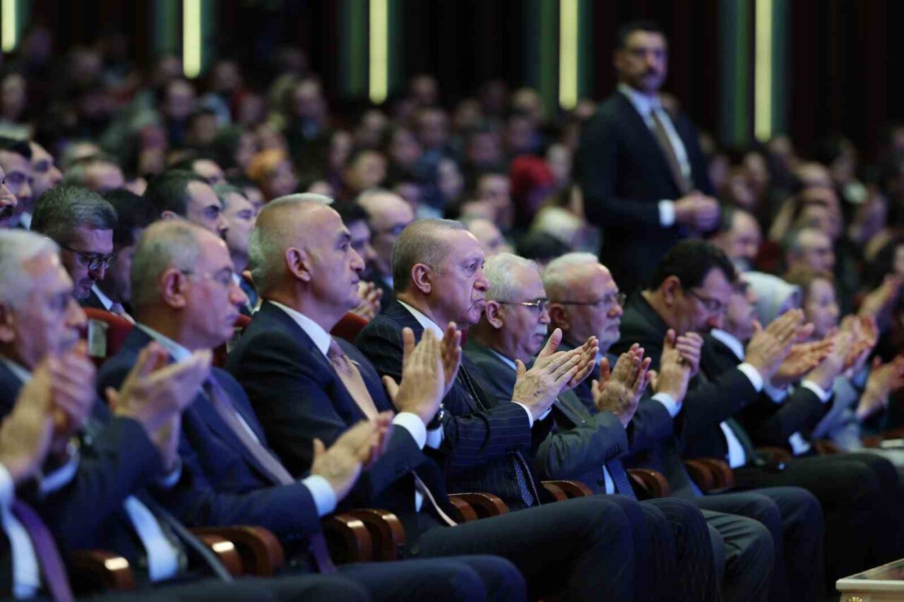 Kültür ve mirasın korunması, yaşatılması ve gelecek nesillere aktarılması için büyük bir hassasiyetle çalışmalarını sürdürdüklerini ifade eden ve bunlardan bazılarını sıralayan Erdoğan, “İşin tabiri caizse birileri gibi edebiyatını ve istismarını yapmıyor, tribünlere oynamıyoruz. Tam tersine meselenin önemini müdrik bir şekilde her alanda çok yönlü bir çaba harcıyoruz. Arkeolojik kazılardan restorasyon faaliyetlerine, gece müzeciliği uygulamasından kaçakçılıkla mücadeleye, kültür varlıklarımızı hem muhafaza hem de ihya ediyoruz. Bakınız, son 23 yılda yurt dışına kaçırılan 13 bin 448 eserin ülkemize iadesini sağladık. Kültür Yolu kapsamında sadece geçtiğimiz yıl 20 farklı şehrimizde 50 bini aşkın sanatçının katılımıyla 9 bin 600’ün üzerinde etkinlik gerçekleştirdik. Gençlerimizin gelenekli sanatlarımızla daha sıkı bağlar kurabilmesi için başlattığımız ve ilkini 15 Temmuz Müzesinde gerçekleştirdiğimiz ‘Yaşayan Miras Okullarımızı’ çok kısa bir süre içerisinde 81 ilimize yaygınlaştıracağız. 2025 senesinde yapılan kazı çalışmalarında 15 binin üzerinde arkeolojik buluntuyu gün yüzüne çıkardık. Gece müzeciliğiyle 600 bin ziyaretçi ağırladık. Hemen yanı başımızdaki Cumhurbaşkanlığı Millet Kütüphanemizde bu noktada çok önemli çalışmalara imza atılıyor, kütüphanemizde sadece 2025 yılı içerisinde 17 sergiye ev sahipliği yaptık. Burada tek tek saymaya kalksak saatlerimizi alacak daha nice çalışmayı, eseri, projeyi hayata geçirdik. İnşallah bundan sonra da kültür varlığımızı korumak ve güçlendirmek için sanatçılarımız, gençlerimiz, ülkemiz ve milletimiz için çalışmaya, koşturmaya kararlılıkla devam edeceğiz. Rabbim yar ve yardımcımız olsun diyorum” diye konuştu.