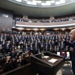 Türkiye’nin 2028 yılına kadar 1,9 trilyon dolarlık bir ekonomik büyüklüğe ulaşmayı hedeflediğini dile getiren Erdoğan, mal ihracatını 375 milyar dolara çıkarmayı planladıklarını da belirtti. Cumhurbaşkanı, her türlü engeli aşarak Türkiye’yi geleceğe taşımak için kararlı olduklarının altını çizdi.