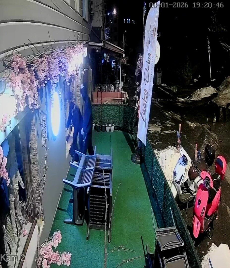 Güvenlik kamerası görüntülerinde, işyerinin önüne gelen gençler, kameranın önüne gelerek, “Buraya özür dilemeye geldik. Tatlı da getirdik. Bu kadar ciddiye alınacağını bilmiyorduk. Eğlence amaçlıydı. Size kardan adam yapmaya çalışacağız ama etrafta kar yok. O yüzden size baklava getirmiştik” ifadelerine yer verdi. Daha sonra, tatlıyı işyerinin önüne bırakarak oradan ayrıldılar.