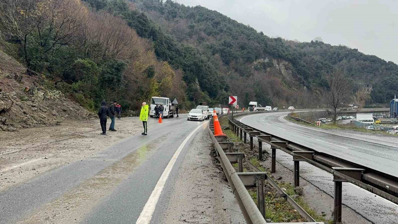 Zonguldak’ın Ereğli ilçesinde yağışların ardından meydana gelen heyelan kara yolunu kapattı.