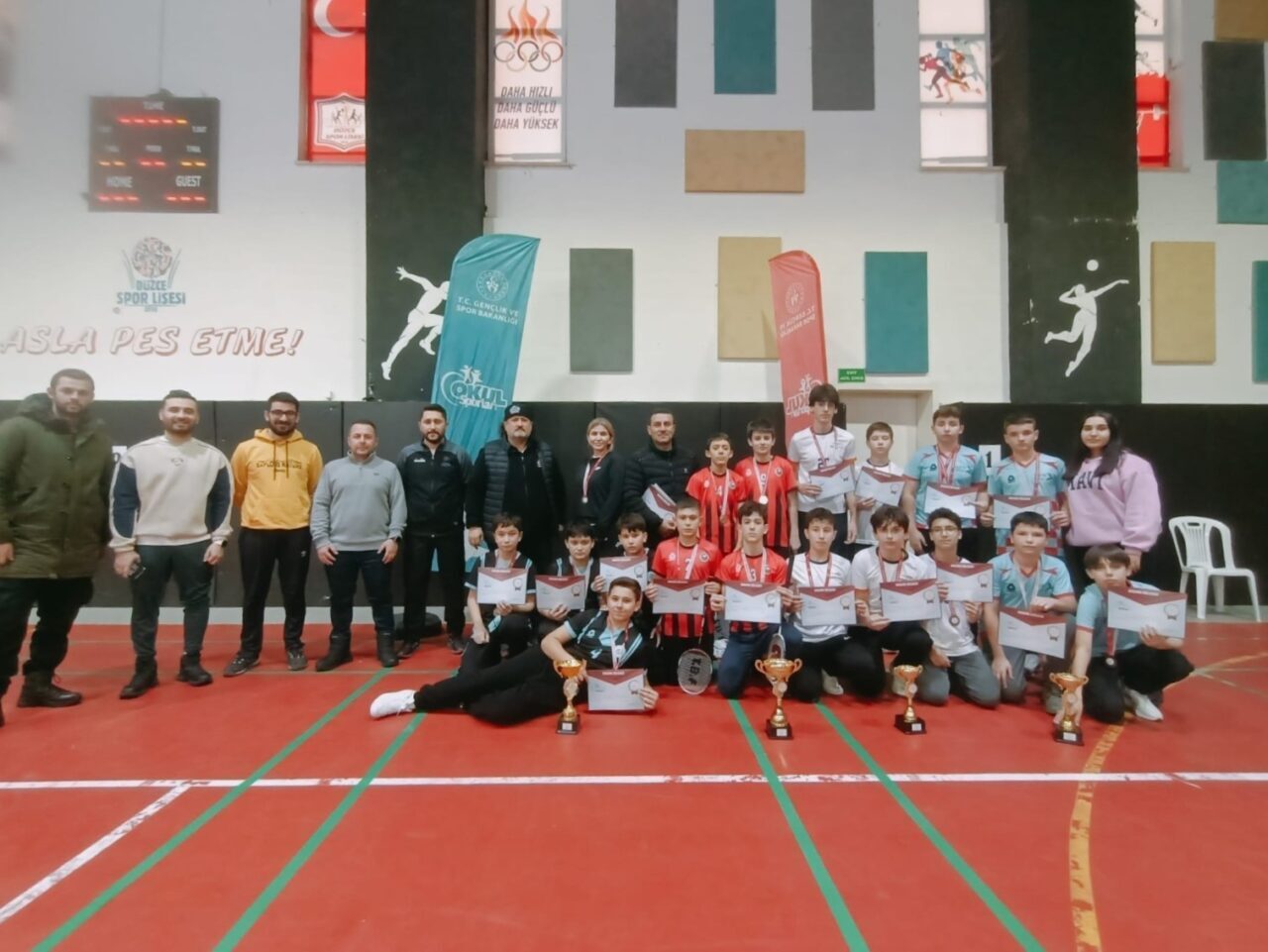 Düzce Spor Lisesi Spor Salonu’nda gerçekleştirilen müsabakalarda