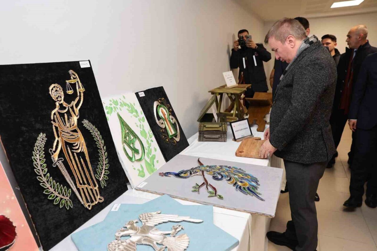 Hükümlülerin topluma kazandırılması ve mesleki beceri edinmeleri amacıyla düzenlenen eğitim çalışmaları meyvelerini vermeye devam ediyor. Bu doğrultuda Erzincan Kadın Kapalı Ceza İnfaz Kurumu’nda hazırlanan sergiyi ziyaret eden Vali Hamza Aydoğdu’ya; Erzincan Cumhuriyet Başsavcısı Mustafa Değerli ve il protokolü eşlik etti.