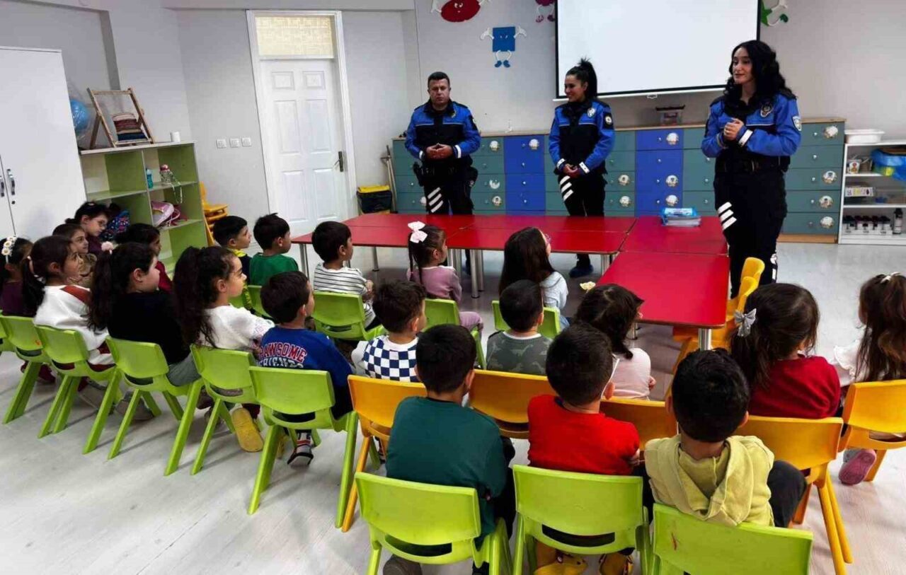 Güvenlik bilincinin erken yaşta kazandırılmasına yönelik gerçekleştirilen eğitimde, öğrencilere çeşitli hediyeler verildi.