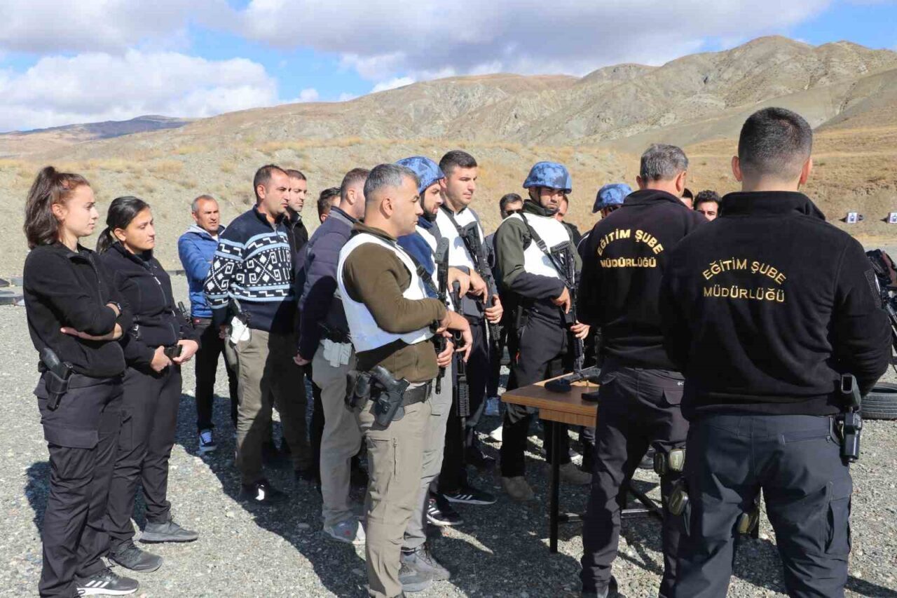 HEDEF VURMA, POLİSE MUKAVEMET GÖSTEREN YA DA KAÇAN ŞÜPHELİLERE KARŞI SAVUNMA TAKTİKLERİ İLE ETKİSİZ HALE GETİRME GİBİ TEORİK VE UYGULAMALI EĞİTİMLER, ERZİNCAN İL EMNİYET MÜDÜRLÜĞÜ EĞİTİM ŞUBE MÜDÜRLÜĞÜNÜN UZMAN EKİPLERİ YÖNETİMİNDE GERÇEKLEŞİYOR