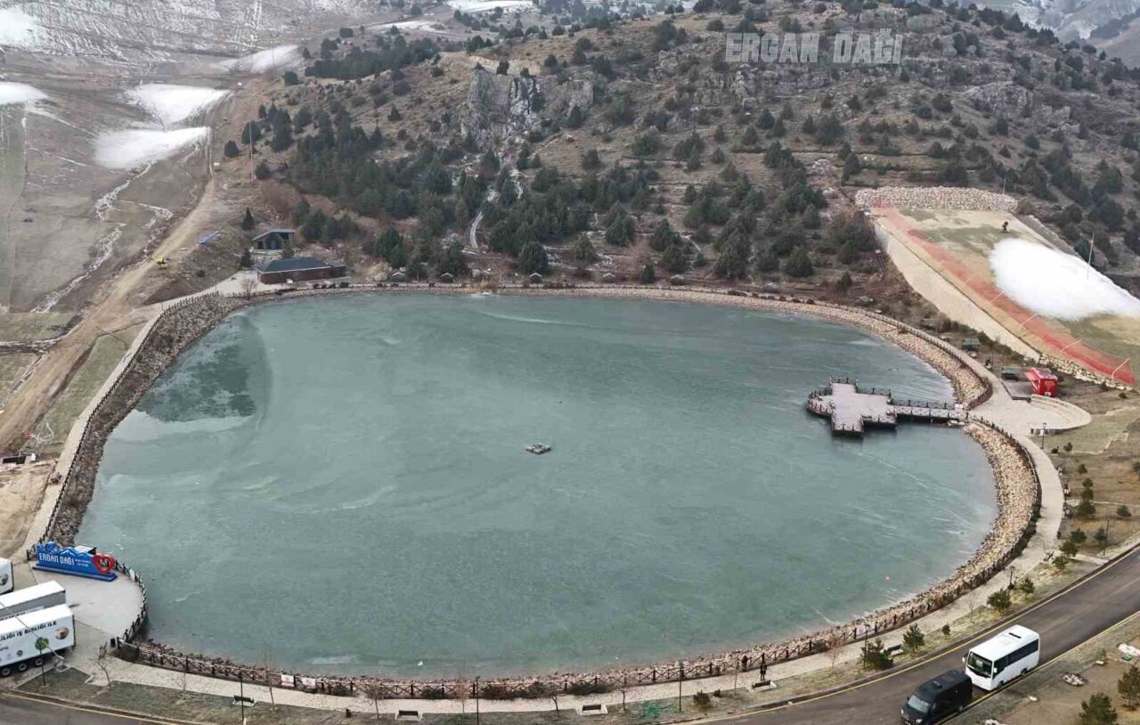Yüksek kesimlerde hava sıcaklığının sıfırın altında 10 dereceye kadar düştüğü kentte, 2 bin 970 rakımda ve Munzur Dağları’nın eteğinde yer alan Ardıçlı Gölü’nün yüzeyi tamamen buzla kaplandı. Derinliği yaklaşık 5 metre olan göl, kış mevsiminin etkisiyle kartpostallık görüntüler oluştururken, bölgeyi ziyaret eden vatandaşlar manzaranın eşsiz olduğunu dile getirdi. Ergan Dağı Kayak Merkezi’nin hemen yanında yer alan göl, fotoğraf tutkunları için de popüler bir nokta haline geldi. Ardıçlı Gölü’ndeki kış güzellikleri havadan görüntülendi.