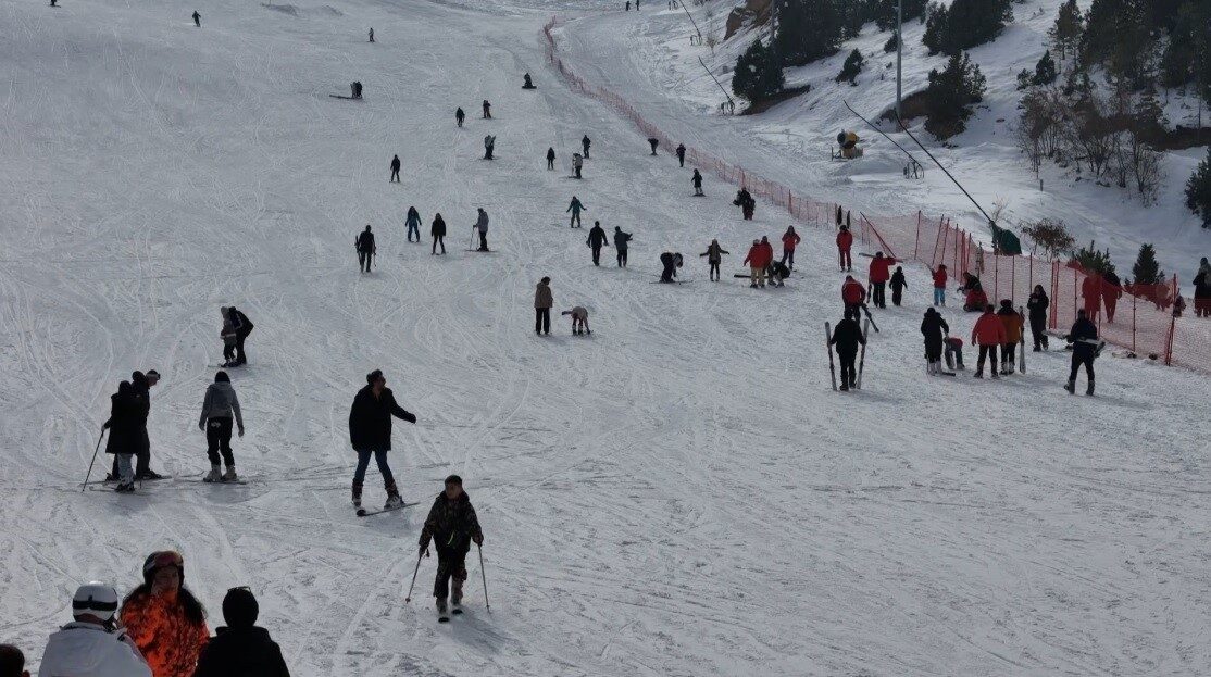 Türkiye’nin önemli kayak merkezlerinden biri olan Erzincan’daki Ergan Kayak Merkezi, hafta sonu tatili dolayısıyla kayak severlerle dolup taştı.