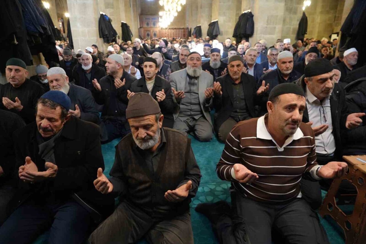 Erzurum’u doğal afetlerden korumak amacıyla Pir Ali Baba’nın başlattığı ve 500 yıldır aralıksız devam eden 1001 Hatim geleneği kapsamında Ulu Camii’nde cuma namazı öncesi hatim duası icra edildi.