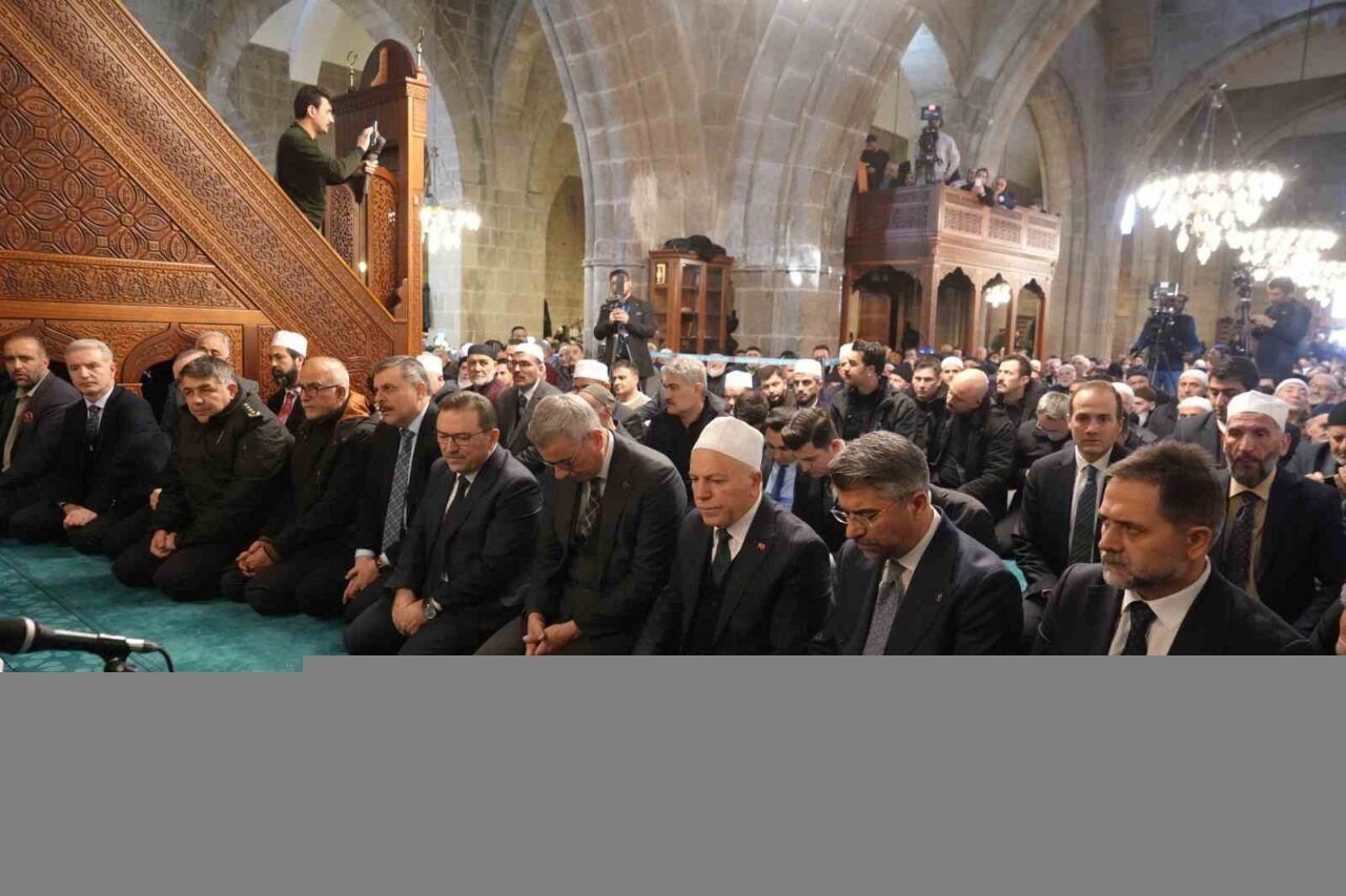 Erzurum merkez ve ilçelerindeki camilerde 19 Aralık 2025’te başlayan 1001 Hatim’in duası, bugün cuma namazı öncesinde Ulu Camii’nde gerçekleştirildi. Yaklaşık bir ay süren program dahilinde okunan 89 bin 665 hatmin duasına Sağlık Bakanı Prof. Dr. Kemal Memişoğlu da katıldı. Ulu Camii’ndeki dua programına, Erzurum Valisi Mustafa Çiftçi, AK Parti Erzurum Milletvekili Selami Altınok, Erzurum Büyükşehir Belediye Başkanı Mehmet Sekmen, Diyanet İşleri Başkan Yardımcısı Dr. Hüseyin Hazırlar, Yakutiye Belediye Başkanı Mahmut Uçar, AK Parti İl Başkanı İbrahim Küçükoğlu, MHP İl Başkanı Adem Yurdagül, İl Emniyet Müdürü Onur Karaburun, İran İslam Cumhuriyeti Erzurum Başkonsolosu Alibeman Eghbalı Zarch, ilçe müftüleri ve çok sayıda vatandaş katılım gösterdi. Bu yıl Erzurum’da okunan 89 bin 665 hatmin duası için Ulu Camii’nde büyük bir kalabalık toplandı.