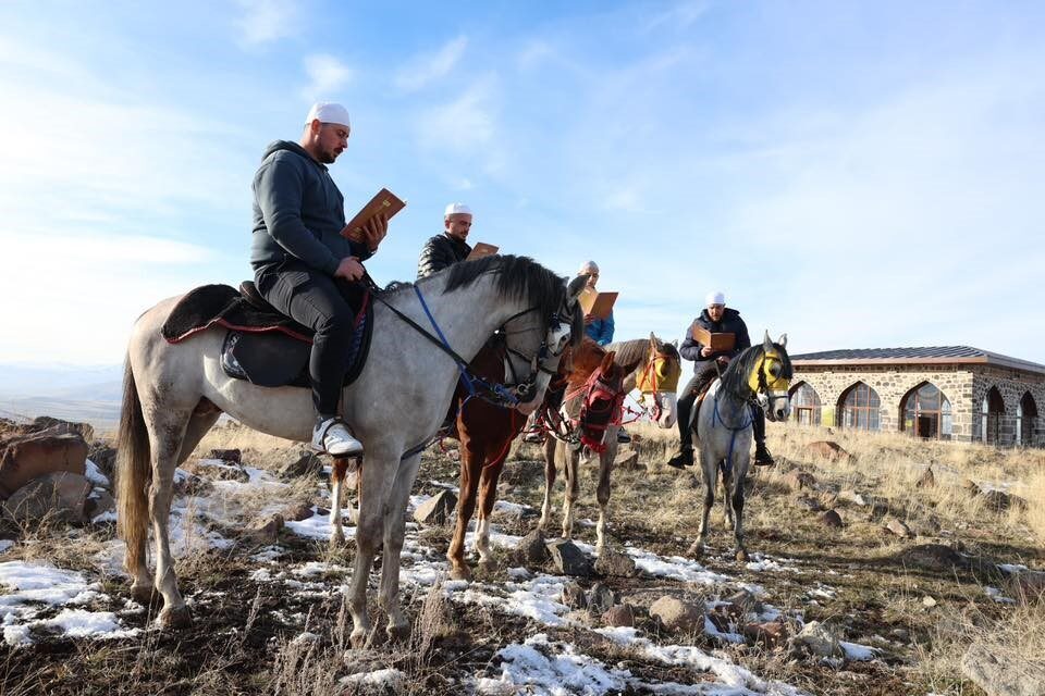 Erzurum’da, sabah namazıyla birlikte camilerde hatim okumaları başladı. Bugün ise Pir Ali Baba Türbesi’nde özel bir etkinlik düzenlendi. 19 Aralık 2025 ve 15 Ocak 2026 tarihleri arasında sürecek olan 1001 Hatim geleneğinin açılışı, Dutçu köyü yakınlarındaki Pir Ali Baba Türbesi’nde gerçekleşti. Törende hafızlar, atlar üzerinde Kur’an-ı Kerim okuyarak geçmişte Pir Ali Baba’nın şehri dolaşmasını temsil ettiler. Tüm hafızlar, oluşturdukları hilal düzeniyle ’1001 Hatim’ geleneğini bu yıl başlatarak bu anlamlı etkinliği taçlandırdı.