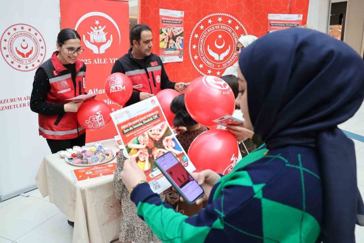 Erzurum’da Aile ve Sosyal Hizmetler İl Müdürlüğü tarafından düzenlenen “Dijital Dünyada Çocuk Hakları” temalı imza kampanyası kapsamında, vatandaşların bilgilendirilmesine yönelik stantlar kuruldu. Açılan stantlarla birlikte, dijital ortamda çocukların haklarının korunması konusunda kamuoyunda farkındalık artırılmasına yönelik önemli adımlar atıldı.