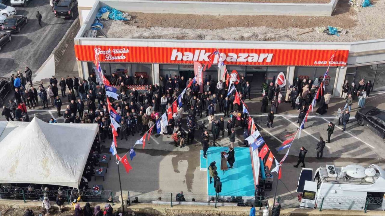 Erzurum Büyükşehir Belediyesi’nin önemli sosyal sorumluluk projelerinden biri olan Halk Pazarı, dokuzuncu şubesini Abdurrahman Gazi TOKİ’lerde gerçekleştirilen bir törenle hizmete sundu. Yoğun katılımın gözlemlendiği açılışta, Erzurum Büyükşehir Belediyesi Genel Sekreter Yardımcısı Murat Altundağ, projenin vatandaşlara kaliteli ürünleri uygun fiyatlarla sunmayı hedeflediğini ifade etti.