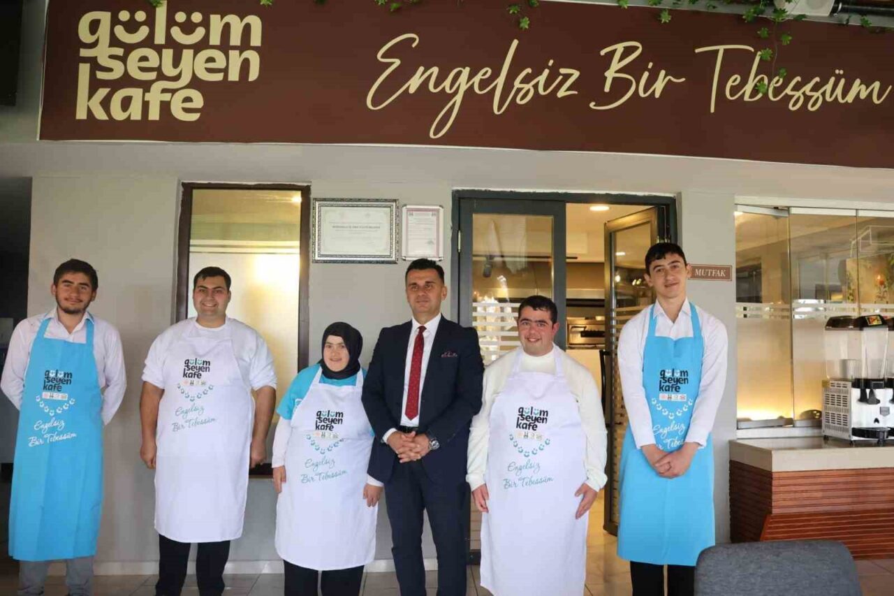 Aile ve Sosyal Hizmetler İl Müdürü Hasan Aykut, burada yaptığı konuşmada, korumalı iş yerlerinin, özel gereksinimli bireylerin üretim hayatına katılmalarını destekleyen önemli bir model olduğunun altını çizerek, “Bugün bu anlamlı örneği yerinde görmekten mutluluk duyuyoruz. Gülümseyen Kafe, Korumalı İş Yeri Belgesi alarak özel bireylerimizin üretim süreçlerine katılımına öncülük etmiştir” dedi.
