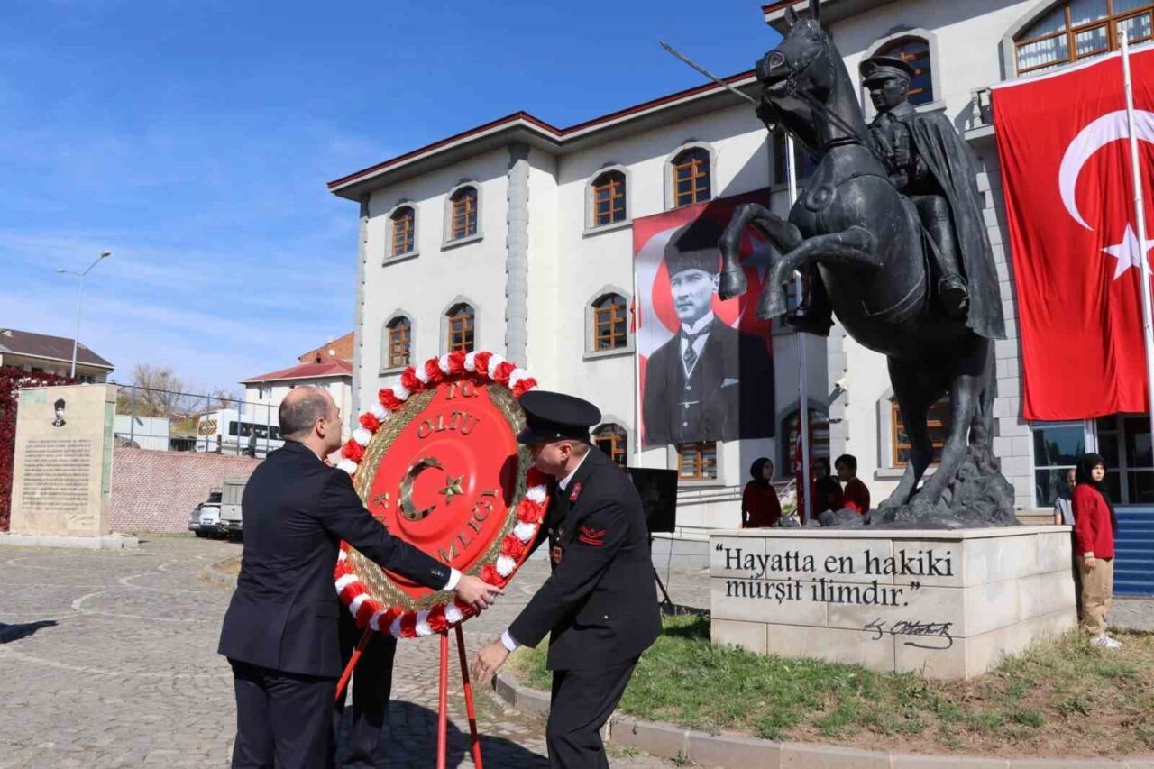 Törende Oltu Kaymakamı Mustafa Çelik, Oltu Belediye Başkanı Adem Çelebi ve Garnizon Komutanlığı temsilcileri, Atatürk Heykeli’ne çelenklerini bıraktı. Çelenk sunumunun ardından, saygı duruşu yapılması ve İstiklâl Marşı’nın okunması ile program devam etti.
