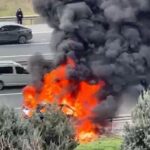 TEM Hadımköy Bağlantı Yolu Esenyurt mevkiinde, BMW marka bir aracın motor kısmında başlayan yangın, dakikalar içinde aracı küle çevirdi. Alev topuna dönen araç, itfaiye ekiplerince söndürülürken, yaşanan o anlar kameraya yansıdı.