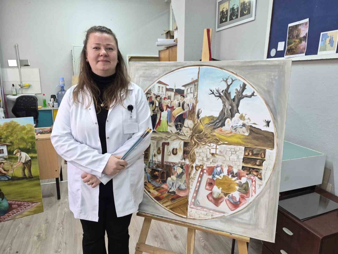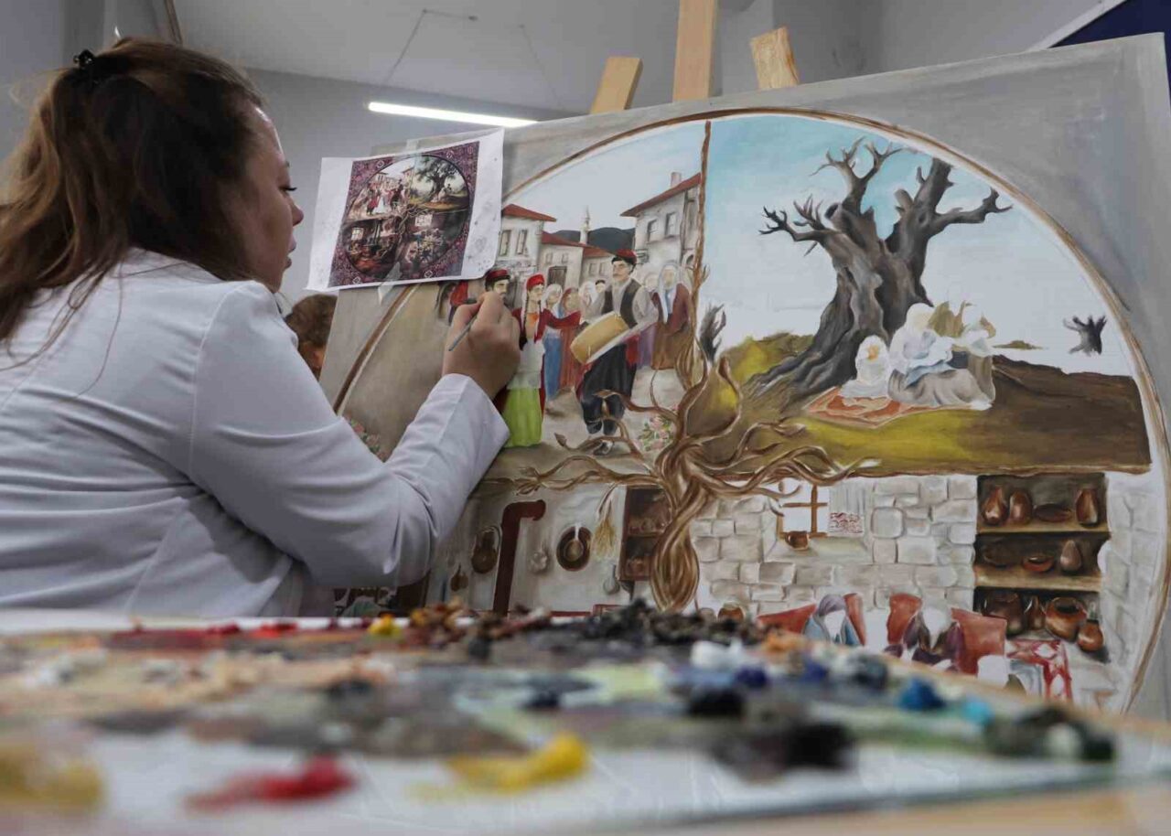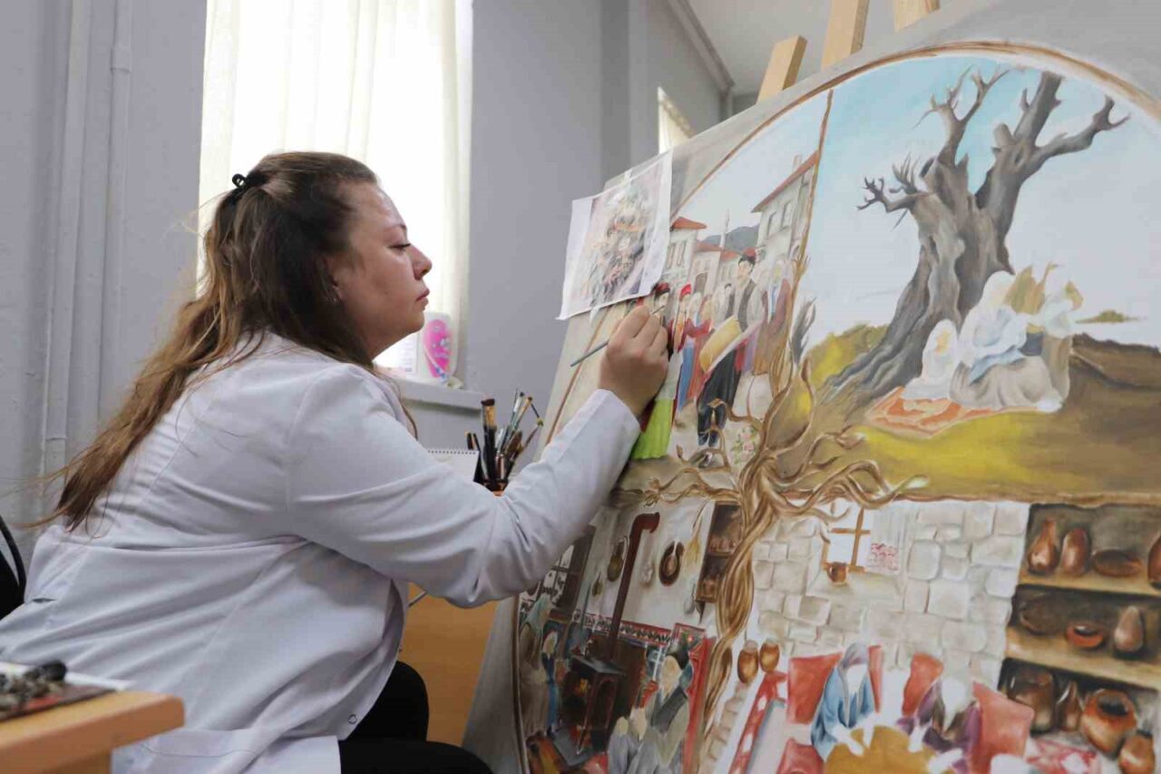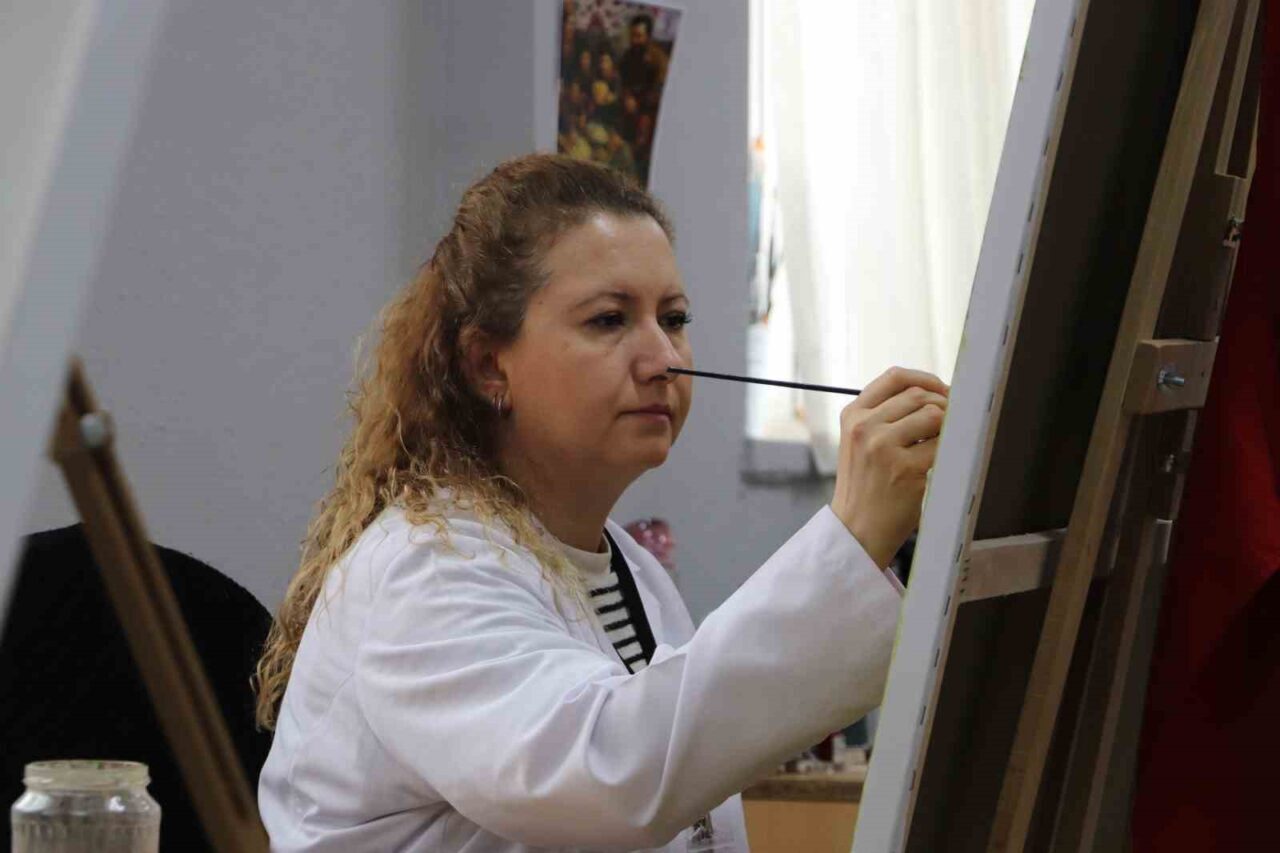 Eskişehir Olgunlaşma Enstitüsü’ndeki ‘2025 Aile Yılı’ kapsamında sürdürülen resim çalışmalarında, sıcak ve samimi aile ortamı fırçalarla tuvallere aktarılıyor. Katman katman yapılan resimlerin her biri için yaklaşık 3 ay emek harcanıyor.