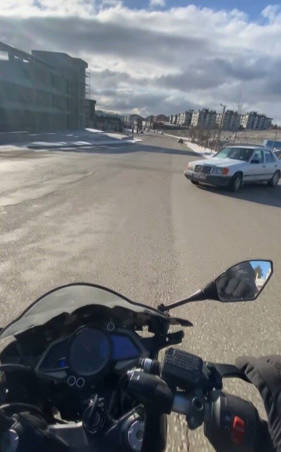 Eskişehir’de ara sokaktan caddede aniden beliren bir araca çarpmaktan son anda kaçınan motosiklet sürücüsünün yaşadığı anlar kask kamerasına yansıdı. Motosiklet sürücüsü, araç sürücüsüne, “Yaşına hürmetim var, ama kurtarmasam ne olacaktı biliyorsun değil mi? Sana hiçbir şey olmayacaktı, 2 tane sabinin canını alacaktın” şeklinde tepki gösterdi.