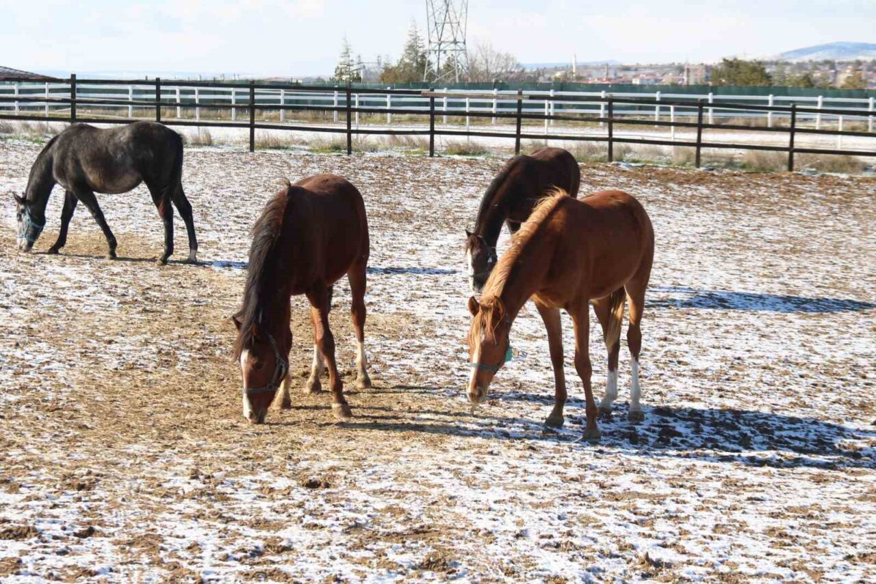 Eskişehir’de İngiliz ve Arap atının yetiştiriciliğini yapan Yenel Kaya, kış ayında soğuğa rağmen hayvanlarının bakımının oldukça zor olduğuna dikkat çekti. Kayıp düşmemesi için 24 saat atlarına gözü gibi bakan Kaya, “Kış bakımı yaza göre biraz daha ağır geçiyor” dedi.