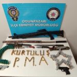 Odunpazarı İlçe Emniyet Müdürlüğü Kurtuluş Polis Merkezi Amirliği ekiplerince, bisikletli bir vatandaşa çarptıktan sonra silah çekerek hakaret ve tehdit eden kimliği belirsiz şahıs, gerçekleştirilen kapsamlı çalışmalar neticesinde tespit edildi. Şahıs bu çalışmalar sonucunda yakalandı. Şahsa ait iş yerinde yapılan aramada; 2 adet ruhsatsız tabanca, 1 adet ruhsatsız av tüfeği, 296 adet fişek, 2 adet boş kovan, 2 adet mermi çekirdeği, 5 adet bıçak ve 1 adet kılıç ele geçirildi. Şüpheli, işlemlerinin ardından adliyeye sevk edilecek.